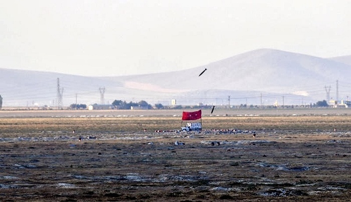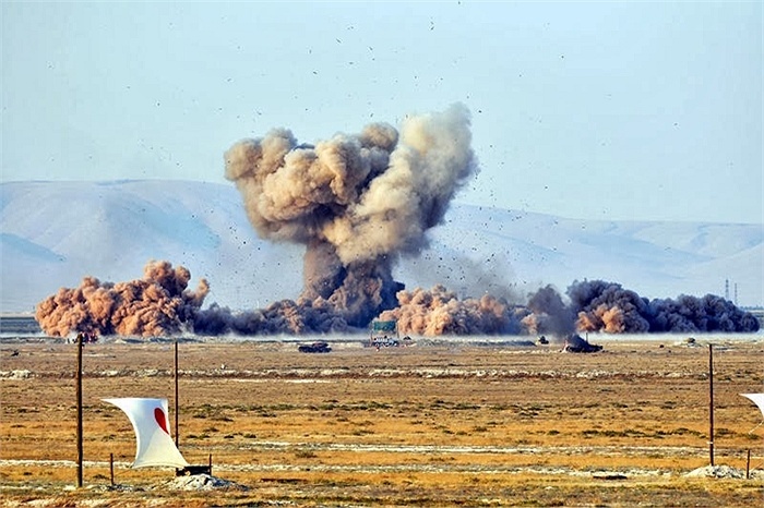 | Quả bom lao thẳng vào mục tiêu giả định. |