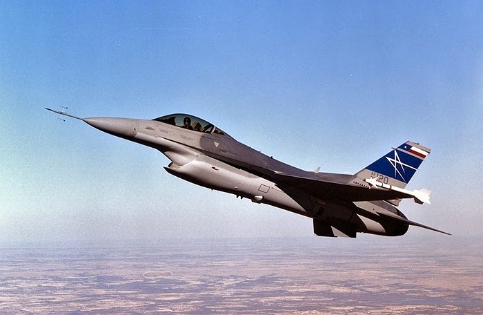 | Chiến cơ F-16 Falcon với động cơ siêu thanh mới. |