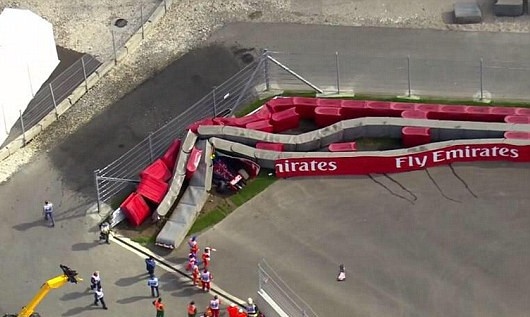 | Vụ tai nạn của Sainz khiến không ít người liên tưởng đến sự cố cách đây hơn 1 năm tại trường đua Suzuka (Nhật Bản). Khi ấy, chiếc xe do Jules Bianchi mất lái đã va chạm mạnh với một chiếc cẩn cẩu đang làm nhiệm vụ cứu hộ. Sau 9 tháng sống thực vật, tay đua người Pháp qua đời hôm 18/7. |