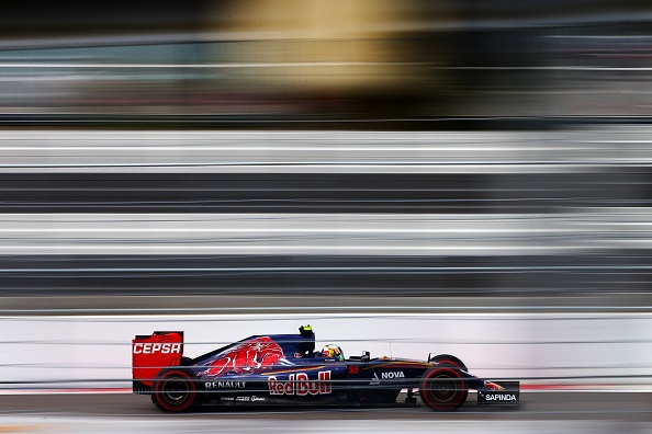 | Chiếc xe đua của đội Toro Rosso biến dạng và phải nhờ tới cần cẩu chuyên dụng để di dời. |