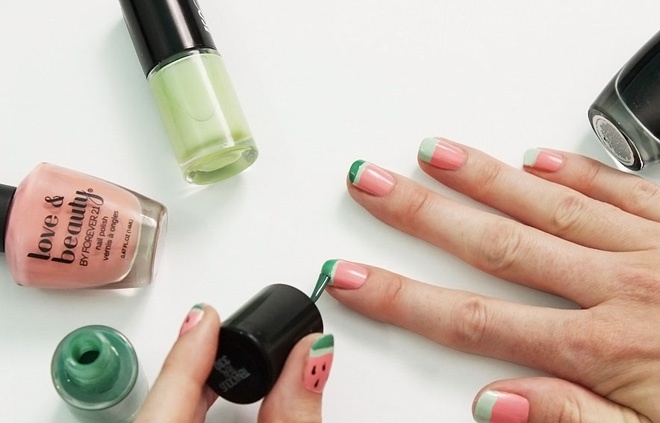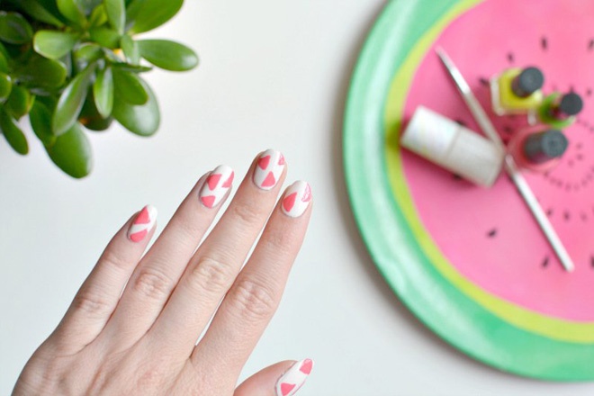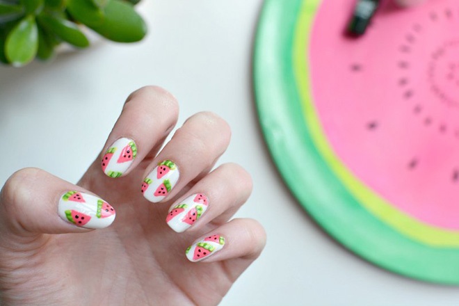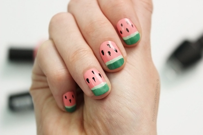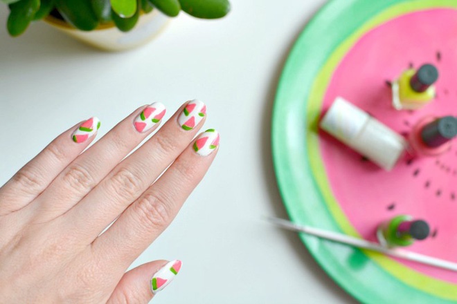 Tay xinh với 2 kiểu nail hình quả dưa hấu ngộ nghĩnh