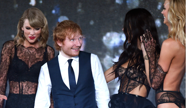 Bạn thân của Taylor Swift, “trai xấu” Ed Sheeran”, tiếp tục đêm diễn với ca khúc Thinking Out Loud trong lúc các người mẫu Adriana Lima và Alessandra Ambrosio sải bước trên sân khấu với chiếc áo ngực đính kim cương trị giá 2 triệu đô-la. Ở phía sau sân khấu, Taylor Swift không ngừng cổ vũ cho Ed Sheeran, người vẫn còn chút ngập ngừng khi lần đầu xuất hiện trên một sân khấu có nhiều người đẹp như Victoria’s Secret Fashion Show.