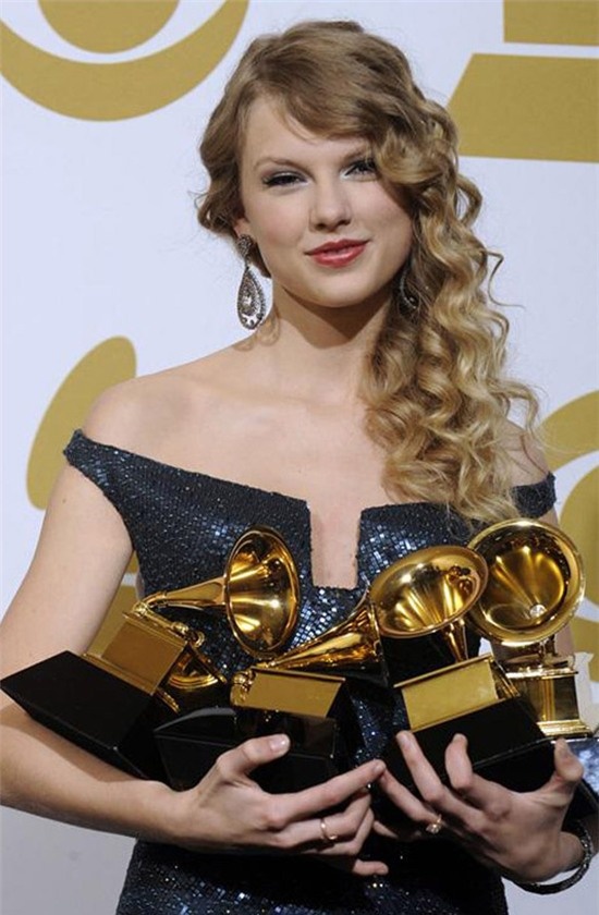 | Taylor Swift bên bốn tượng vàng Grammy danh giá. |