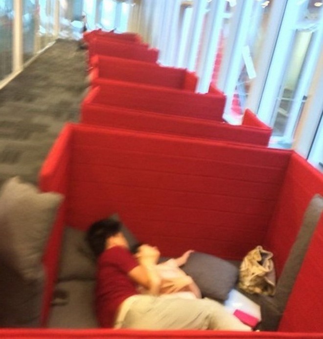 | Cặp đôi ôm nhau ngủ trong thư viện khiến dư luận bức xúc. |