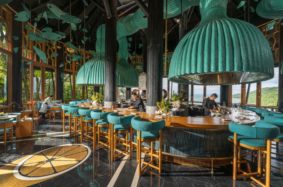 Nằm trên bán đảo Sơn Trà (Đà Nẵng), khu nghỉ dưỡng này sở hữu hệ thống nhà hàng và quầy bar trải dài từ sườn núi ra biển, lấy ẩm thực làm một trong những điểm nhấn trải nghiệm. Không gian được thiết kế gắn với cảnh quan tự nhiên, hướng đến nhóm du khách tìm kiếm dịch vụ cao cấp và yên tĩnh.