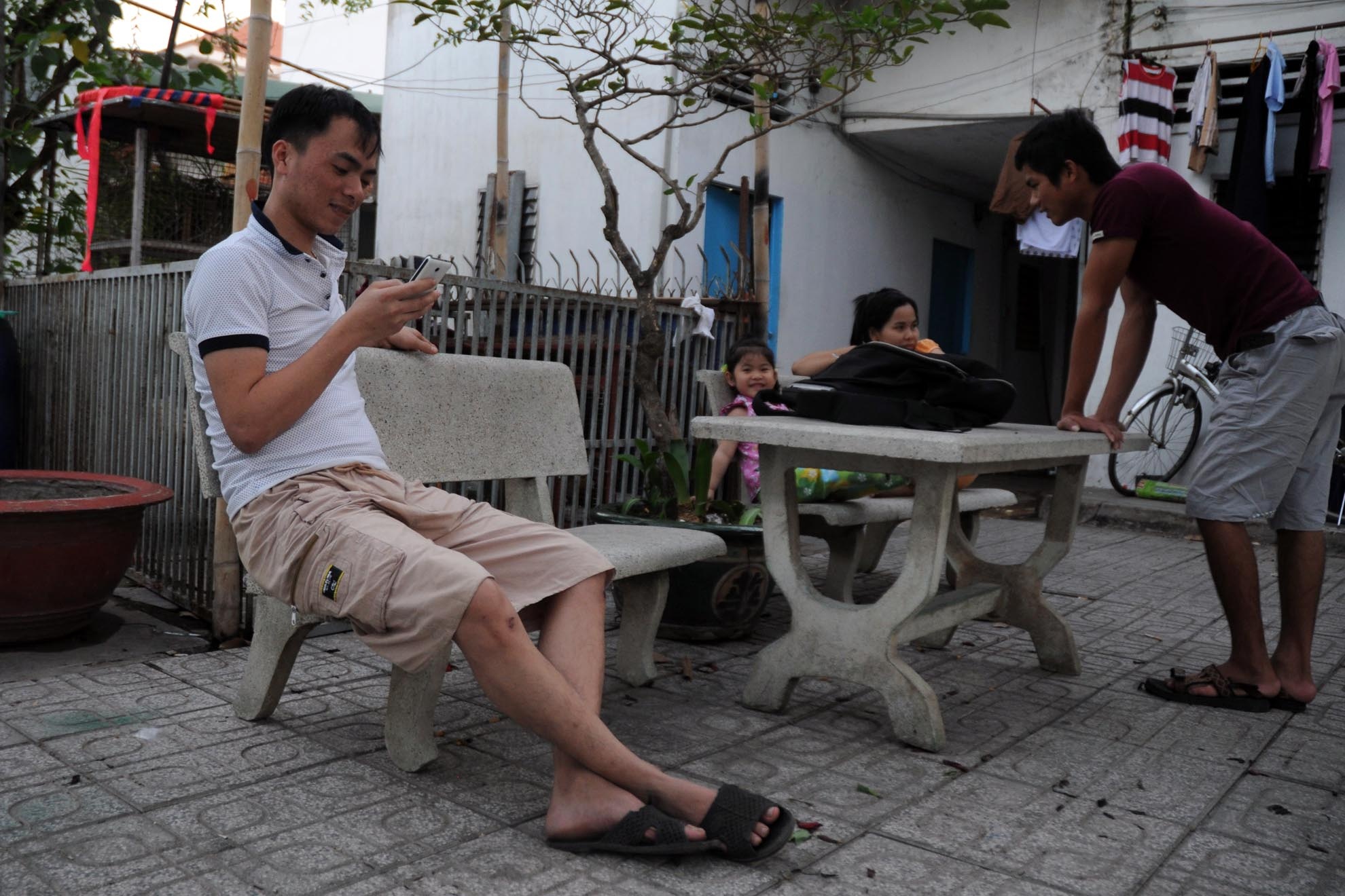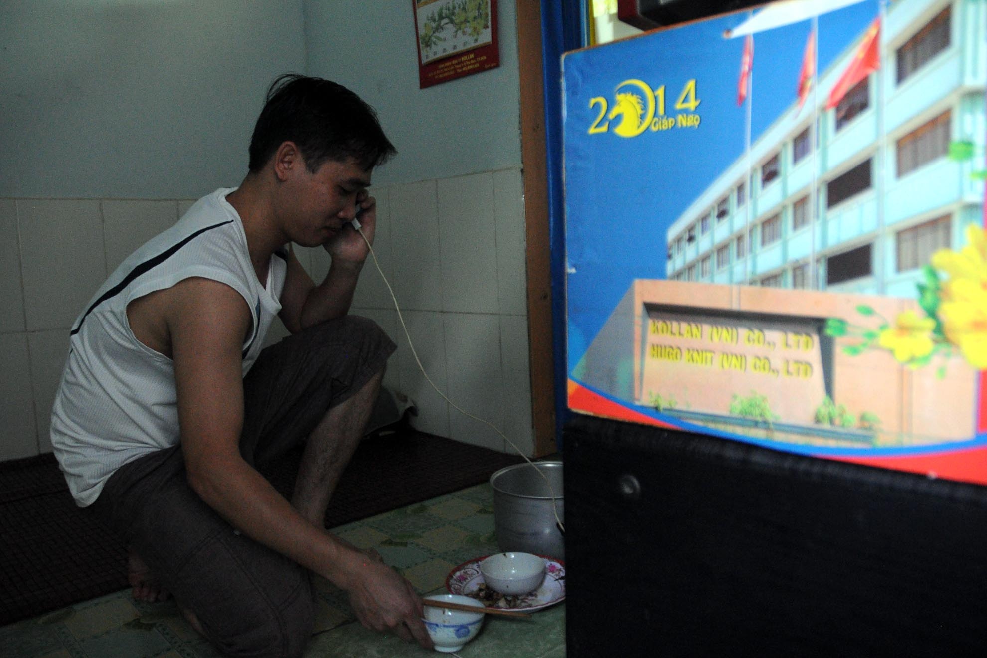 | Anh Nguyễn Văn Tuyển (37 tuổi, quê Bắc Giang) đã hai năm nay không về quê. Anh bảo, tiền làm được đều gửi về cho vợ và 2 con nhỏ ở quê nhà. Mỗi ngày anh đều gọi điện thoại hỏi thăm vợ và hai con gái cho đỡ buồn. |