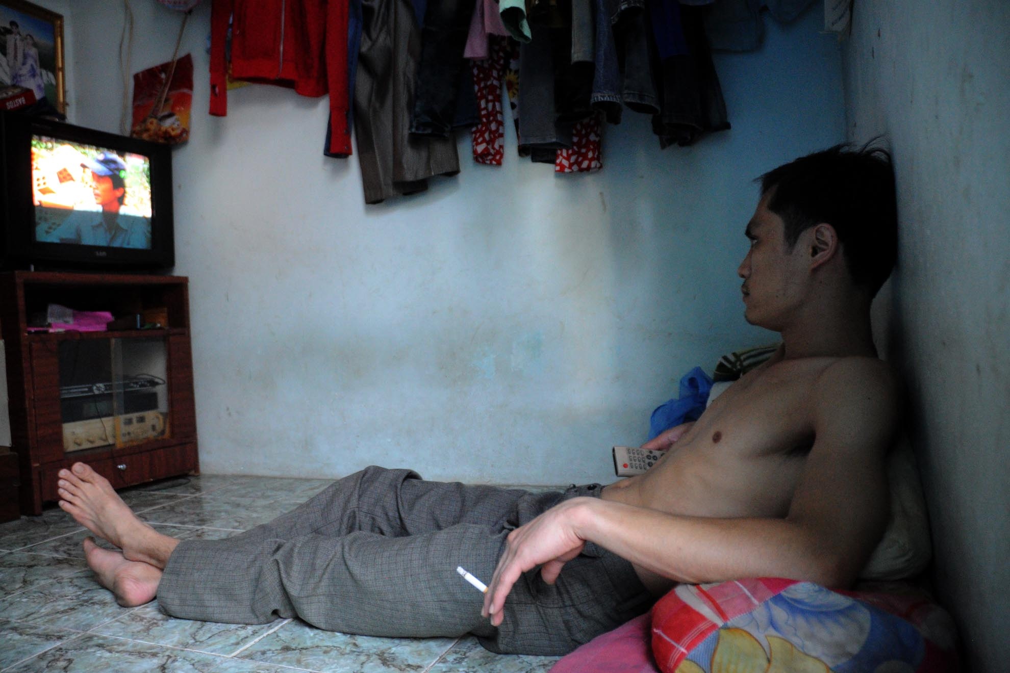 | Những người không về quê ăn Tết đều có lý do riêng. Có người vì lương thấp không đủ trang trải cuộc sống, có người vì phải làm việc cho đến 30 Tết nên không về mà gửi số tiền dành dụm cho ba mẹ. Anh Hùng (30 tuổi, quê Đồng Nai) nói, những ngày Tết sắp tới, anh chỉ có chiếc tivi để vơi đi nỗi buồn xa nhà. |