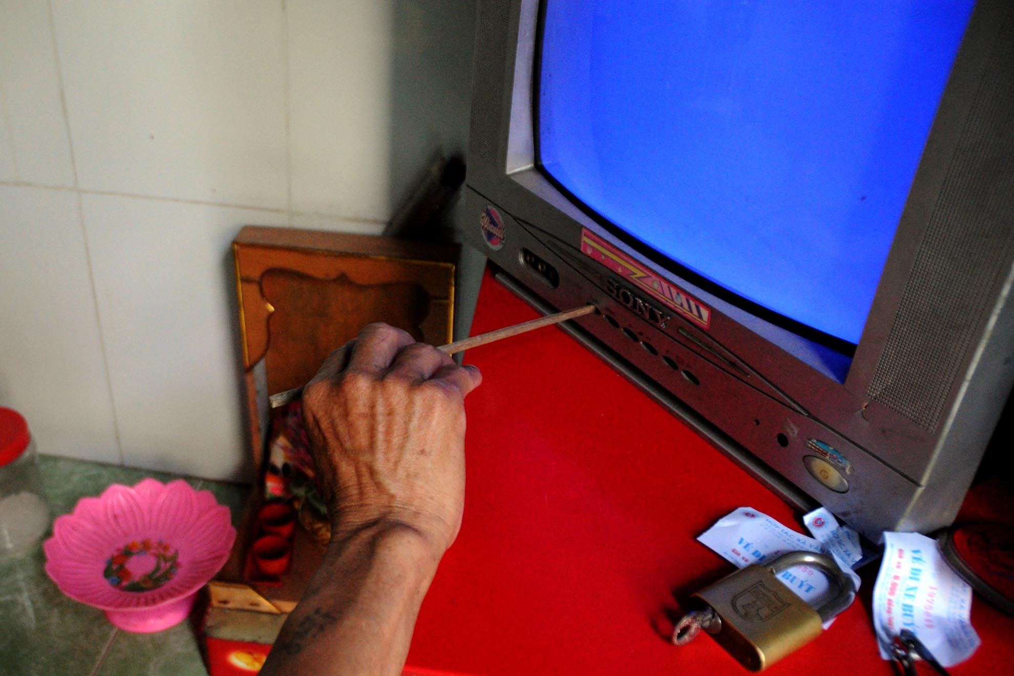 | Thứ duy nhất để các công nhân làm bạn trong ba ngày Tết là chiếc tivi. Tuy nhiên, có những chiếc lúc xem được, lúc không. |