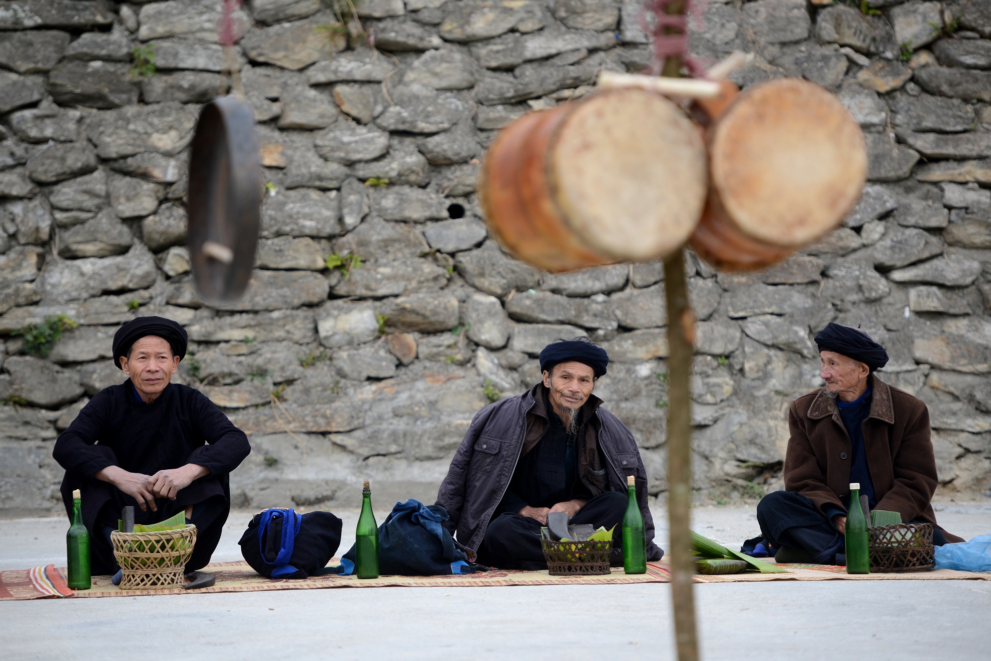 | Chủ tế trong lễ cúng năm mới của người La Chí gọi là Mổ Cóc. Ông cùng các tộc trưởng của họ Vương, Long, Lù, Nông ngồi trang trọng giữa sân tế để làm lễ trước dân bản. |