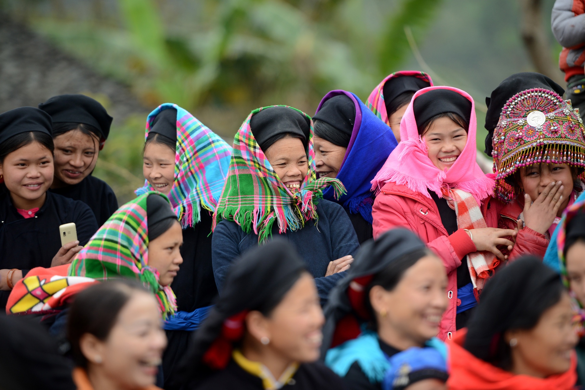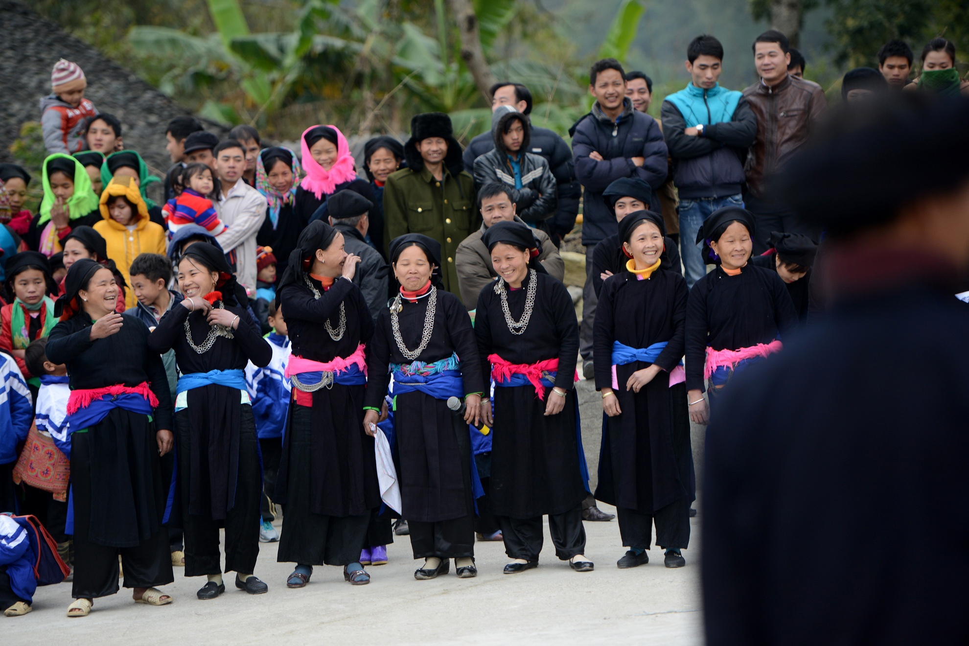 | Dân bản đổ về xem hội vui cười sảng khoái. Lễ đón năm mới cũng là lễ mừng mùa màng được thu hoạch. |