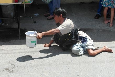 Đối tượng thứ ba là những kẻ ăn xin ở các cây xăng đội nón che mất khuôn mặt, họ giả làm người khuyết tật. Thực ra, họ cũng là người ở độ tuổi lao động nhưng lợi dụng lòng hảo tâm của mọi người.