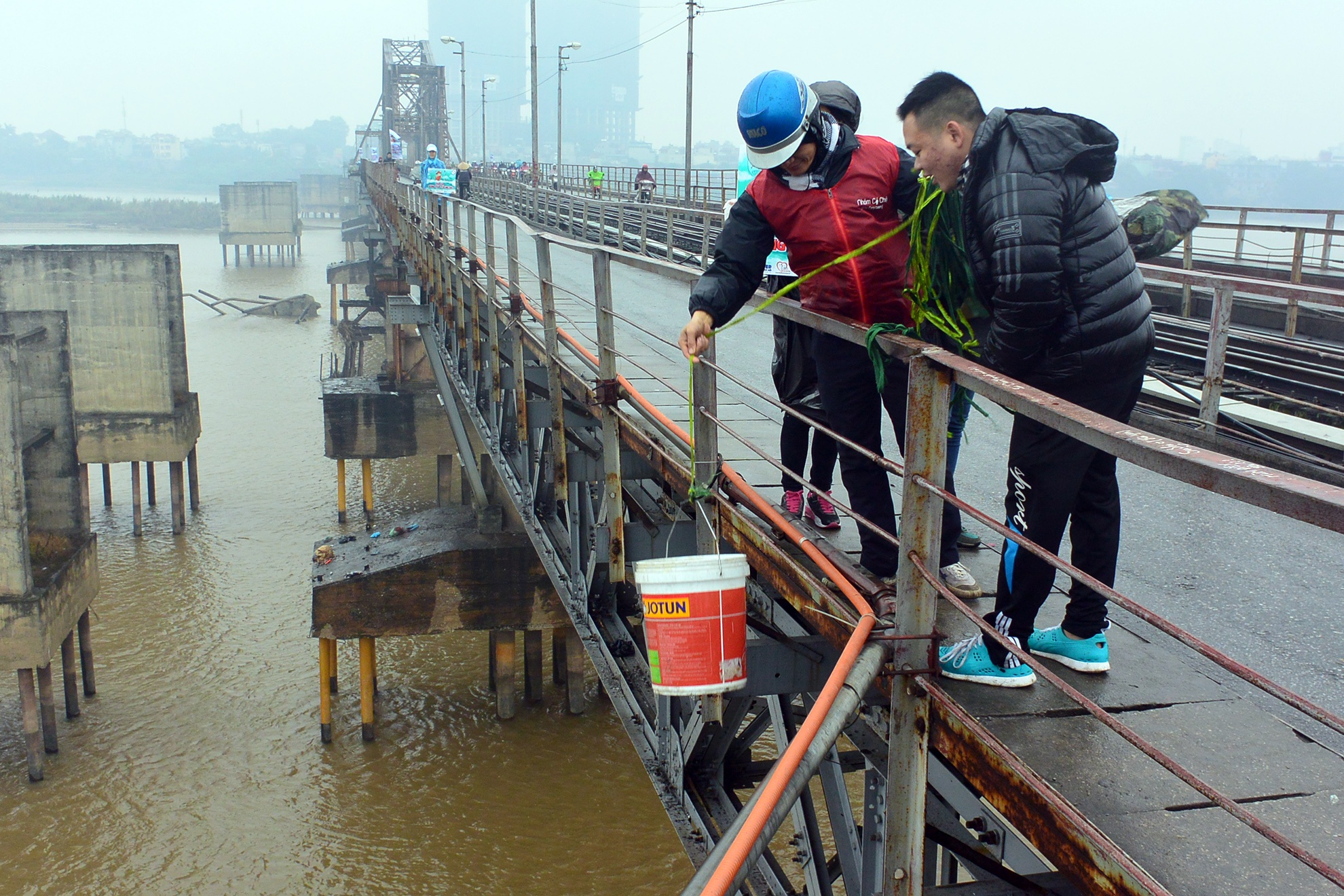| Tại cầu Long Biên, năm nay những hình ảnh phản cảm như mọi năm đã giảm bớt khá nhiều. Một nhóm bạn trẻ đã có ý tưởng xin thả cá thay khá hiệu quả và bảo vệ môi trường. |