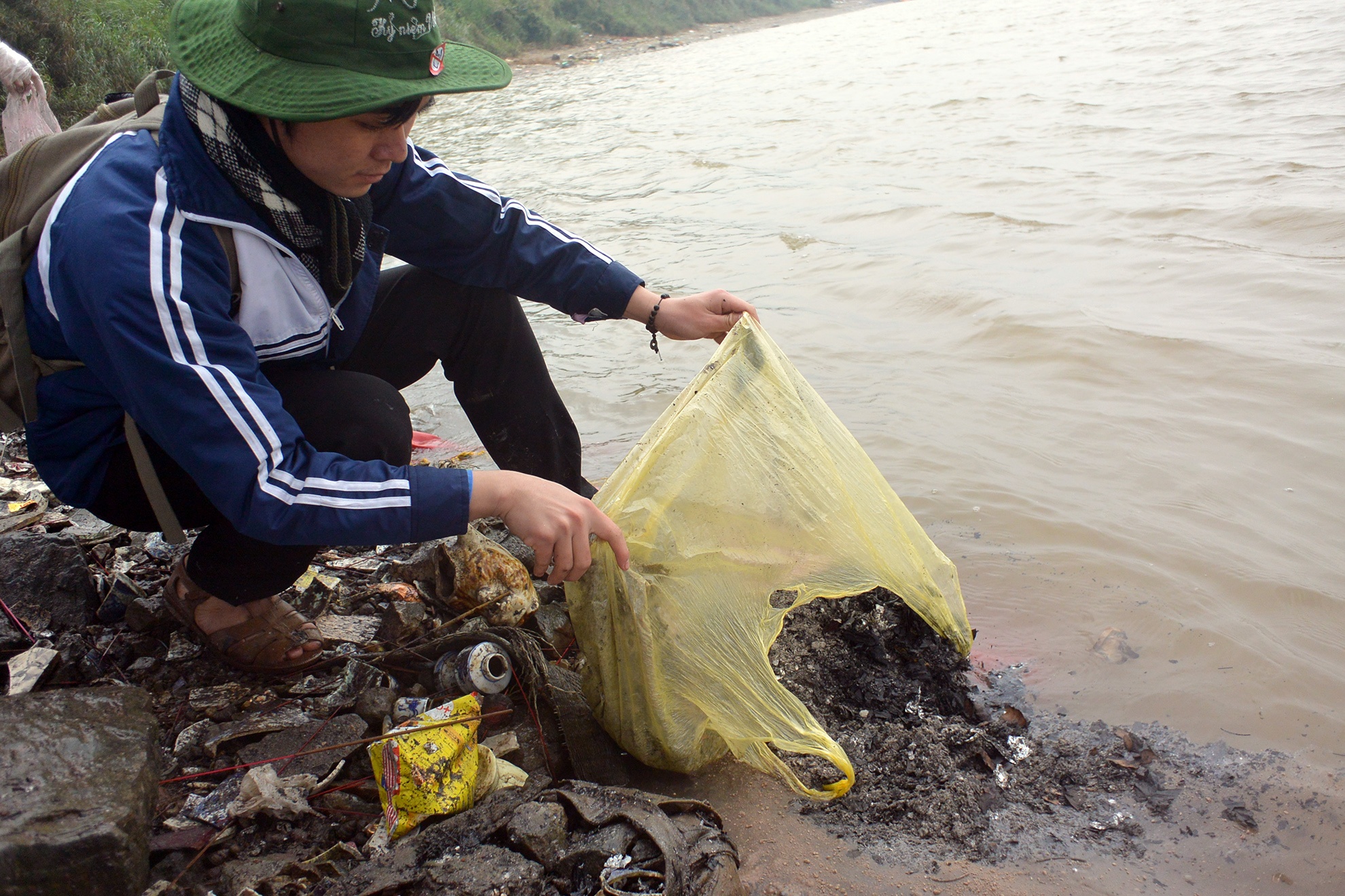 | Xuất hiện một số nhóm tình nguyện viên đi nhặt túi nilon tại các ao hồ để đảm bảo vệ sinh môi trường. |