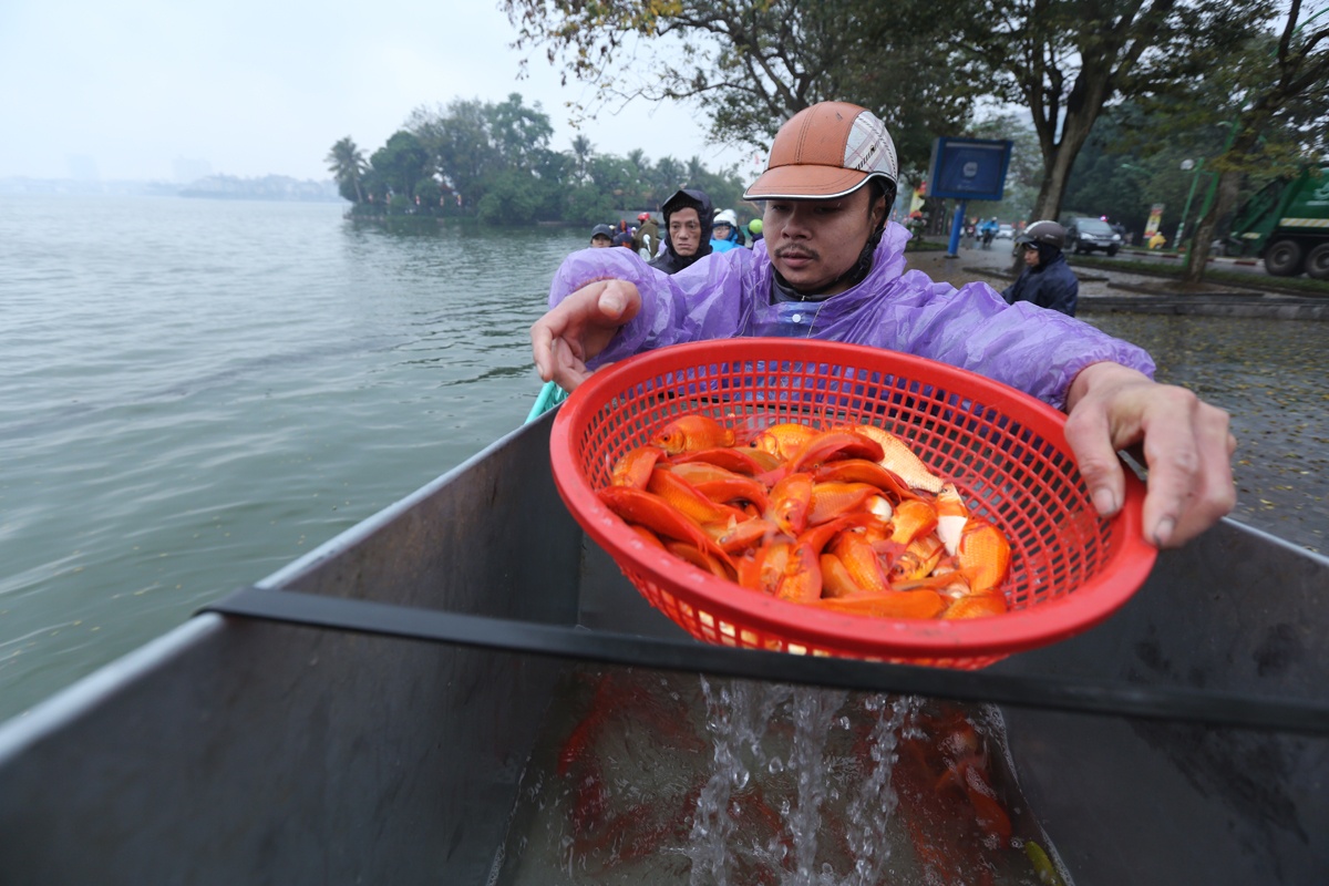 | Anh Lý, chủ hàng cá chép vàng ở chợ hàng Bè cho biết, sau khi người phụ nữ mua xong đã đề nghị anh vận chuyển thùng cá ra hồ Tây để thả. "Hôm qua và hôm nay, có rất nhiều công ty đến mua cá với số lượng lên đến hàng tấn để thả xuống hồ", người chủ cá nói. Trong khi đó người phụ nữ cho hay, là Phật tử nên phóng sinh trong ngày 23 tháng Chạp không phải là việc lạ cho dù số lượng có là bao nhiêu. |