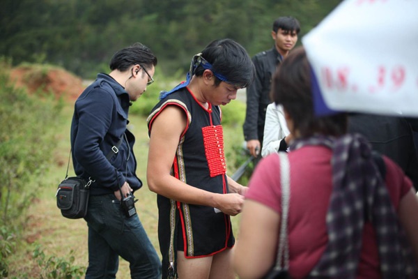 | Vì đóng vai người dân tộc nên phần lớn các cảnh quay Thái Hòa phải mặc mát mẻ như thế này. |