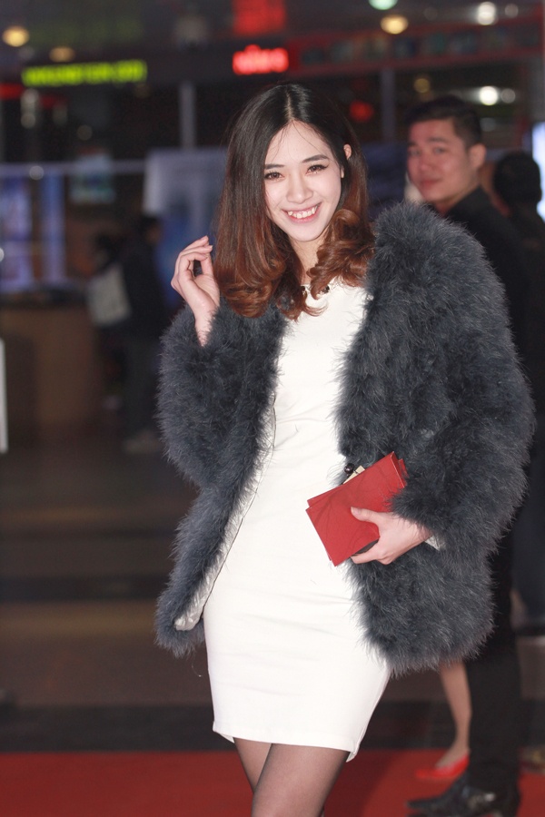 | Hot girl Emily ăn vận cá tính khi tham gia buổi công chiếu tổ chức trong thời tiết giá lạnh của Thủ đô. |