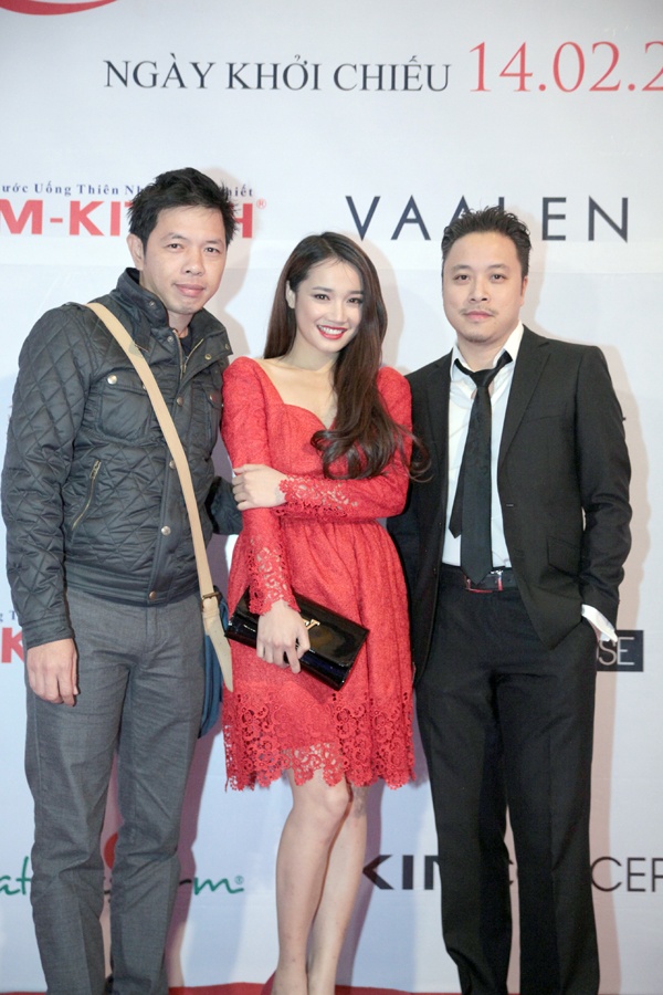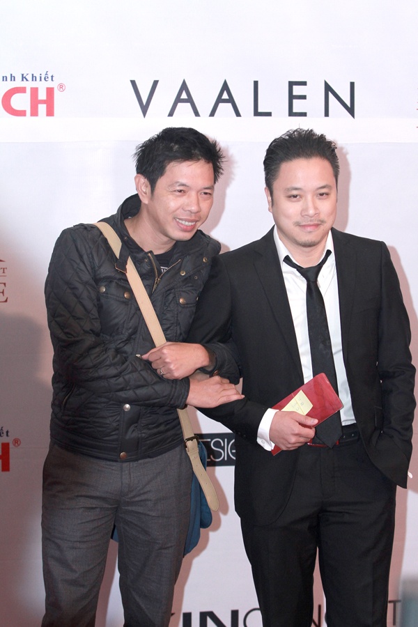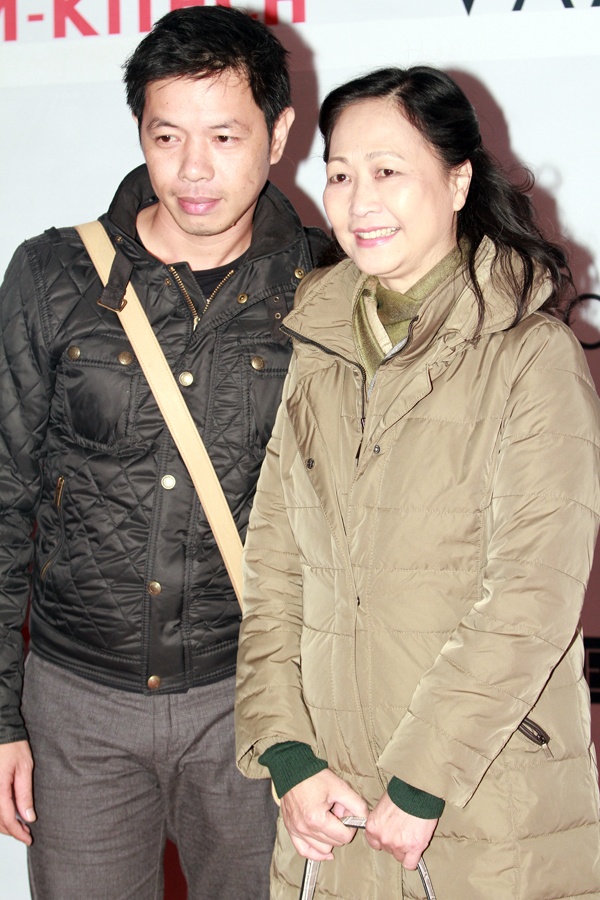 | Đứng trên thảm đỏ, Thái Hòa hỏi vui phóng viên xem áo khoác có đẹp không. Anh tiết lộ vì không lường trước Hà Nội lạnh tới mức nào nên vội vã đi mua áo mới chống rét ngay khi có mặt ở Thủ đô. Không giấu sự hồi hộp nhưng "chị Hội" vẫn liên tục trêu đùa mọi người và không ngần ngại tạo dáng tình cảm bên đạo diễn Victor Vũ. |