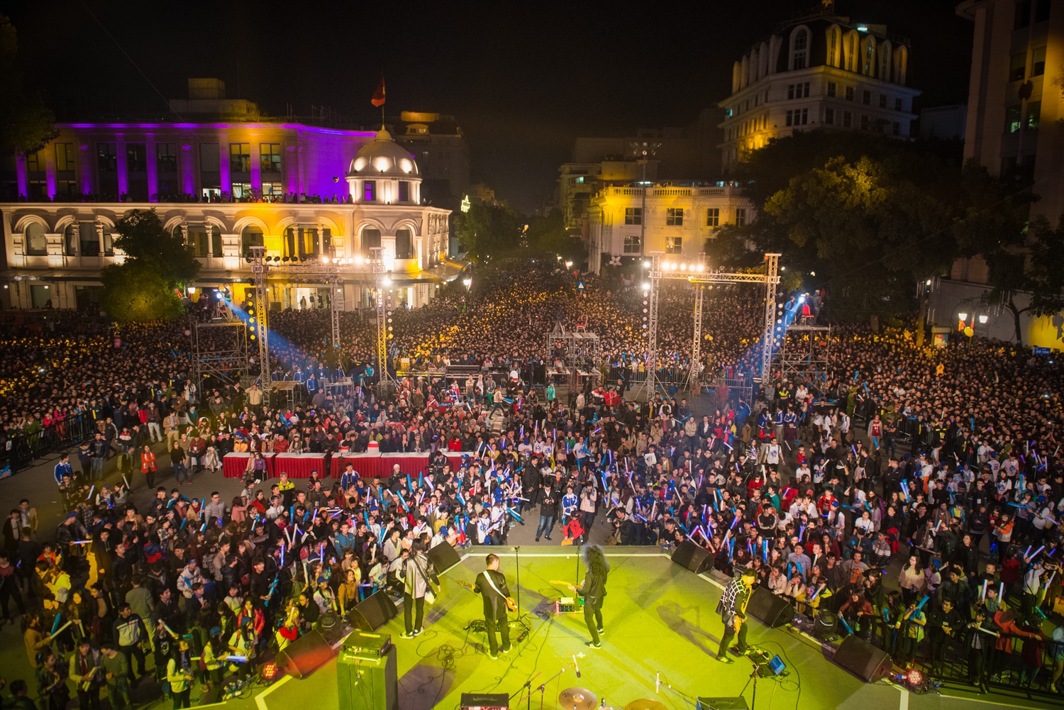 | Hàng nghìn người Thủ đô đổ về quảng trường Cách mạng Tháng Tám để chứng kiến giờ phút giao thừa. |
