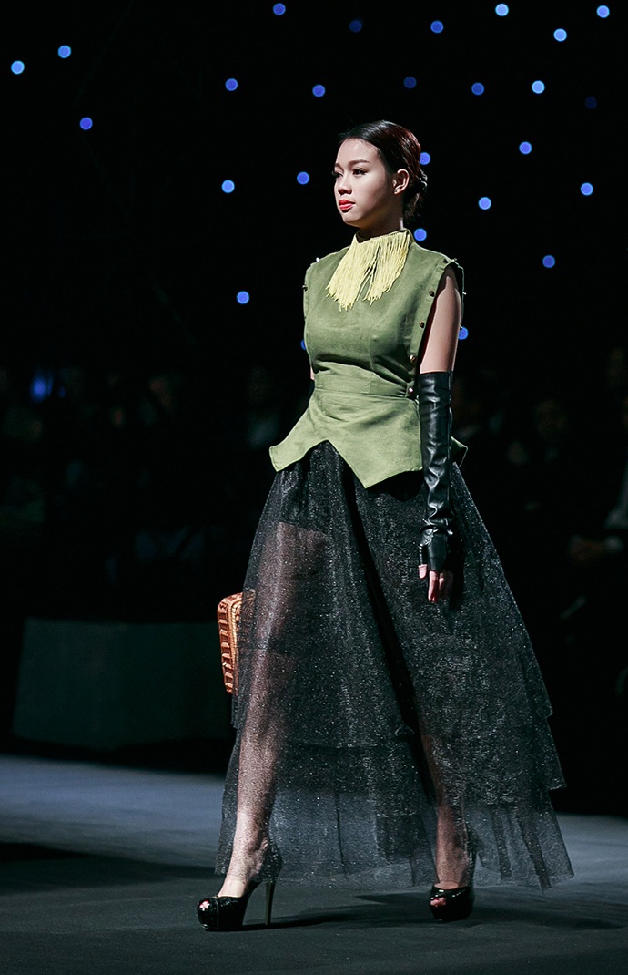 | Cả hai tự tin sải bước trên sàn catwalk. |