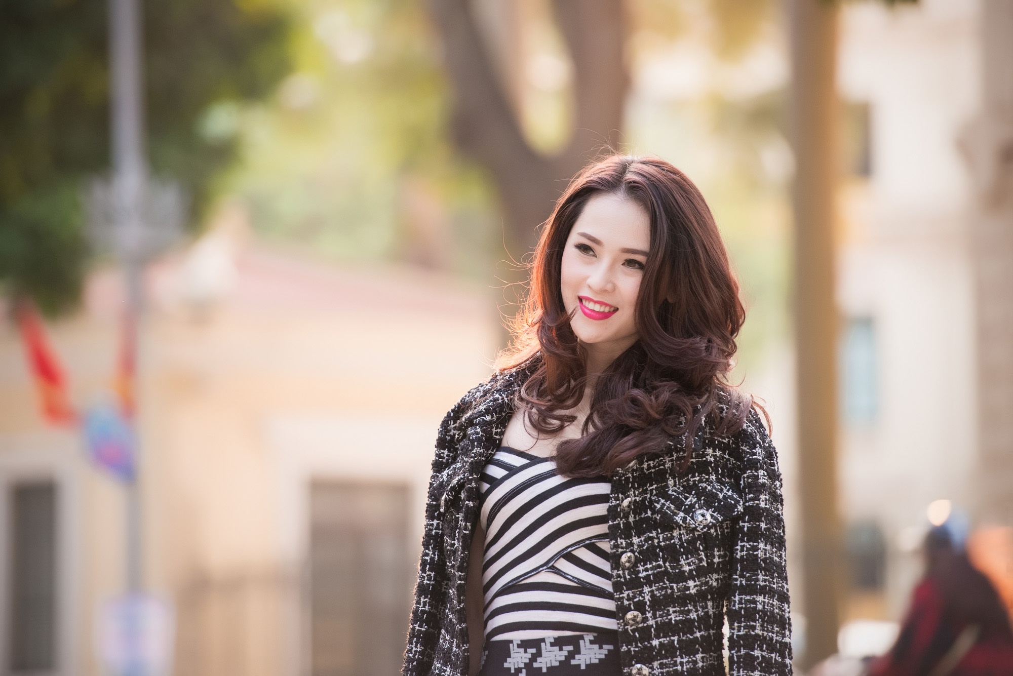 Á hậu Trang sức 2007 khoe vẻ ngoài xinh đẹp, rạng rỡ trong bộ trang phục đắt tiền của Chanel.