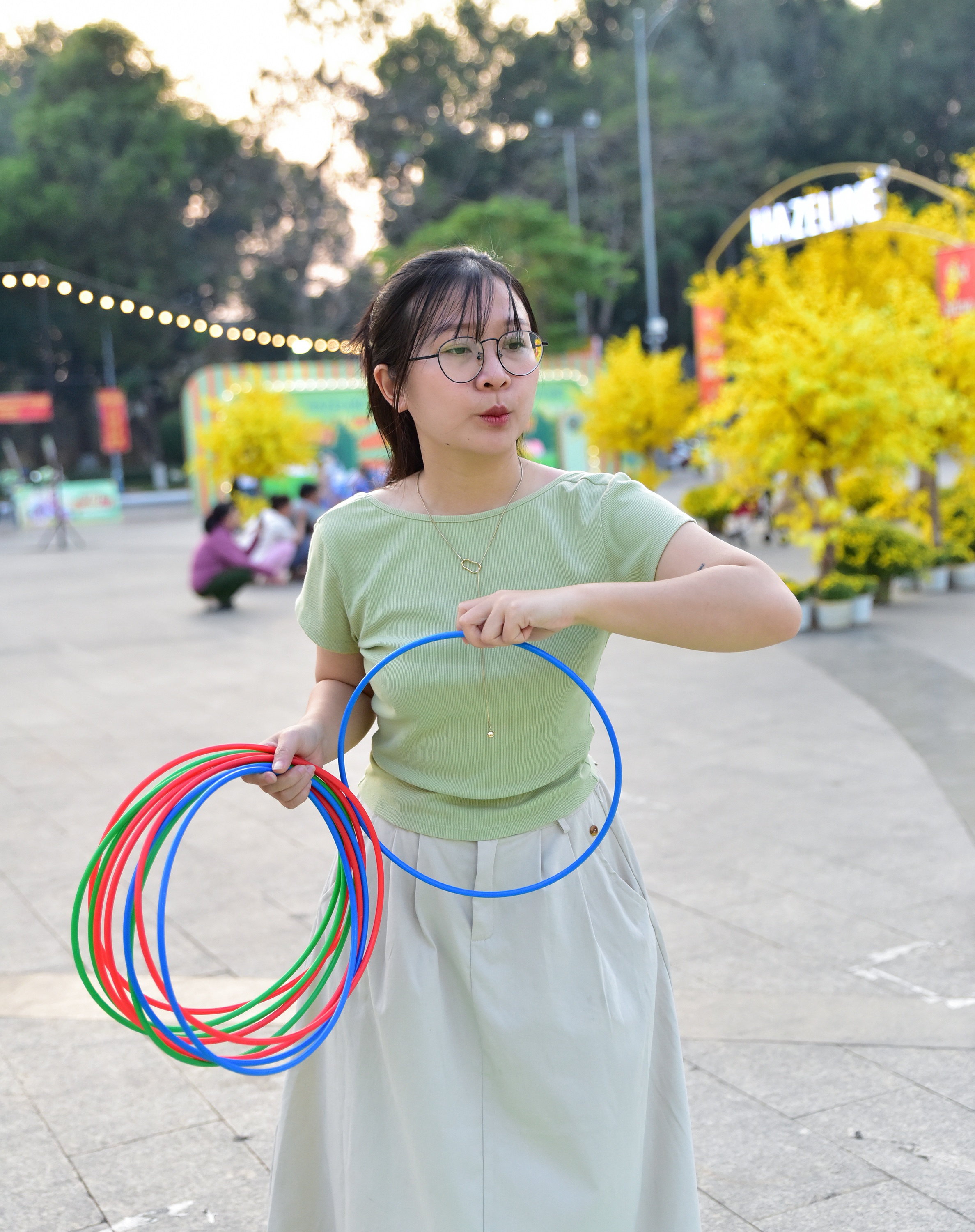 | Cuối tuần, tôi có dịp ghé hội chợ “Tết sáng như ý” của Hazeline ở công viên bờ sông Hậu, Cần Thơ. Không gian sự kiện hoành tráng, ngập tràn sắc xuân. Nhiều gia đình, hội bạn xúng xính diện áo dài đến check-in. |