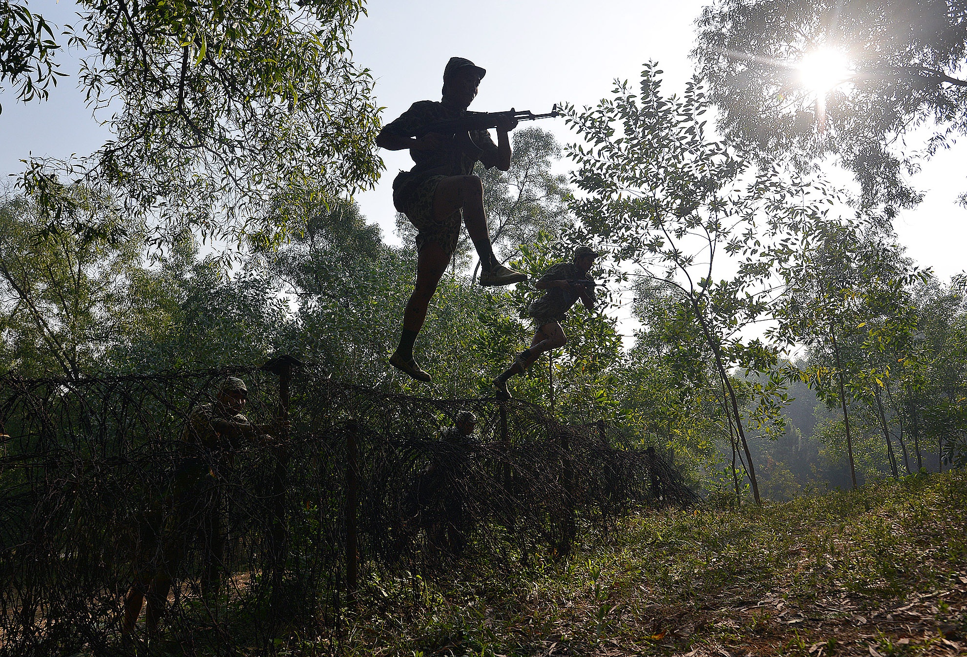 Phá bẫy chông, vượt tường đá, băng qua rào dây thép gai, đổ bộ với trực thăng hay tham gia giải cứu con tin là những nhiệm vụ được các chiến sĩ đặc công tập luyện thuần thục.