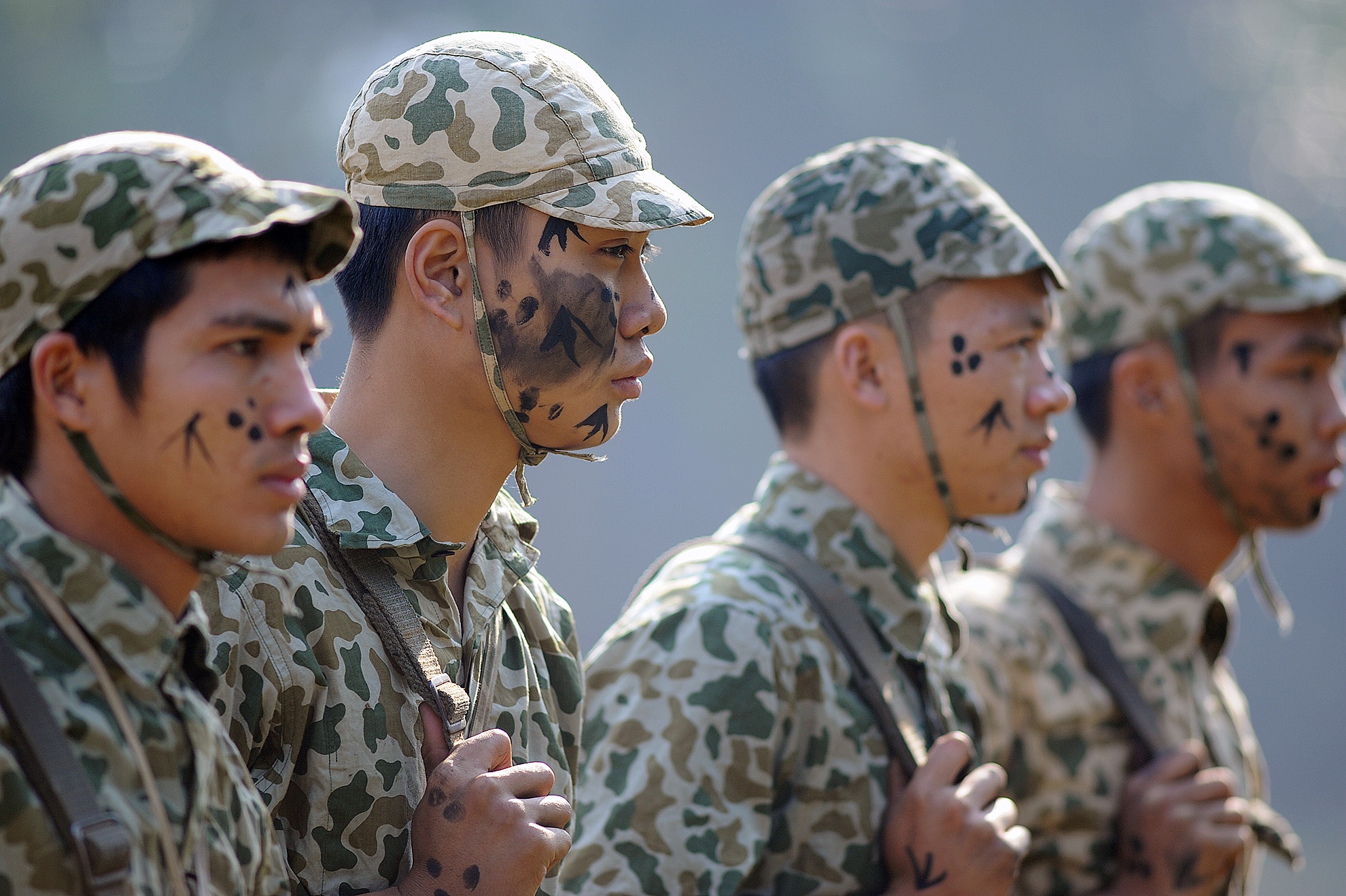 | Những người lính đặc công trẻ của Lữ đoàn 113, Binh chủng Đặc công cất vang bài hát truyền thống sau giờ tập luyện trên thao trường. |