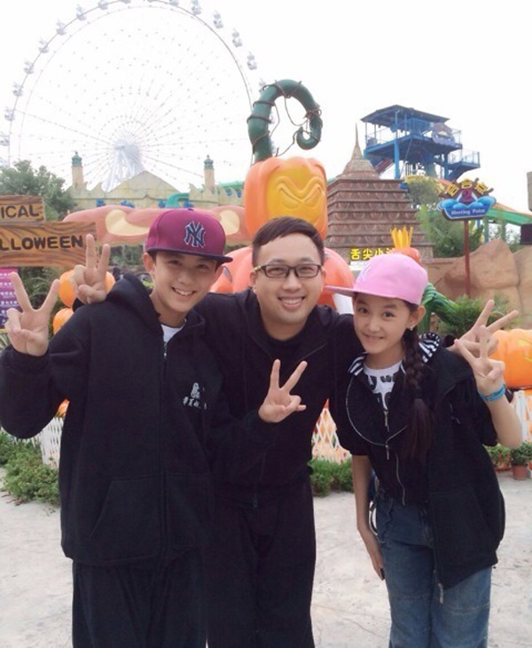 Vu Chính và 2 diễn viên nhí Ngô Lỗi, Tưởng Y Y đóng vai Dương Quá và Quách Phù lúc nhỏ.