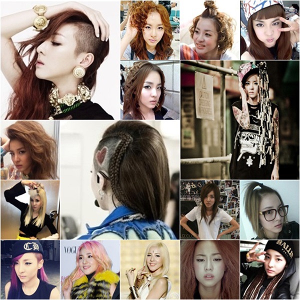 | Bộ sưu tập tóc đa dạng của Dara (2NE1). |