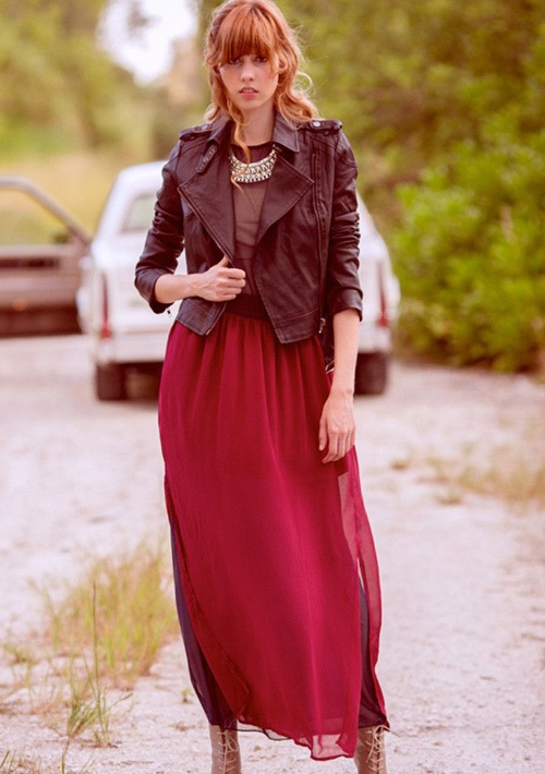 Các kiểu váy ôm sát dành cho dạ tiệc trở nên ấm áp hơn với màu huyết dụ.