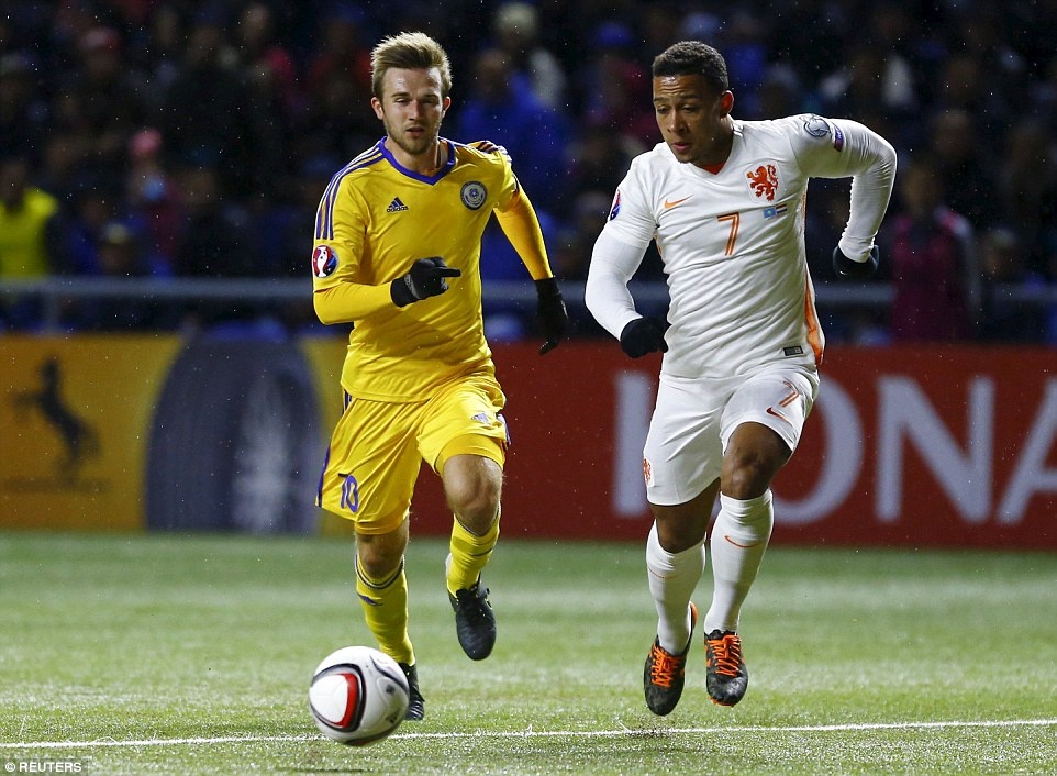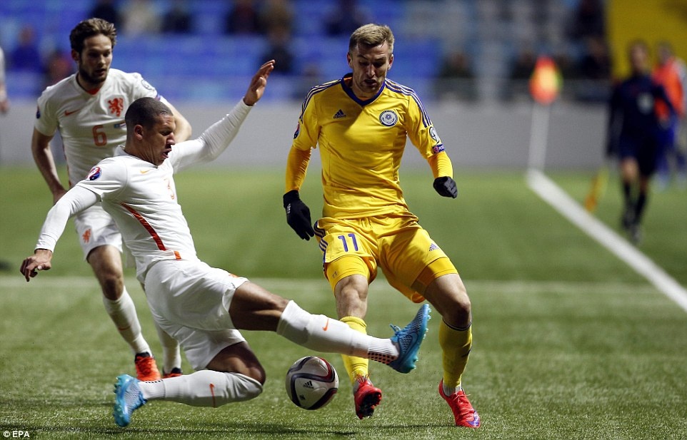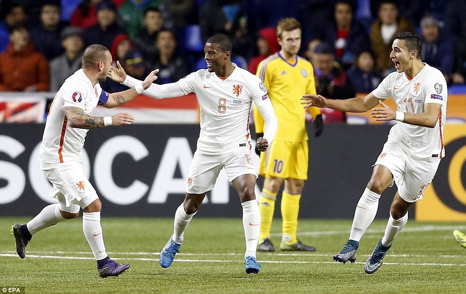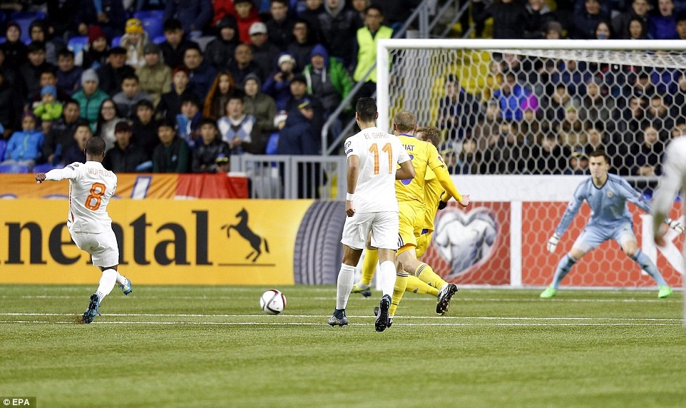 Từ ngoài khu vực 16m50, Wijnaldum thực hiện cú sút chìm vượt qua tầm với của thủ môn Kazakhstan mở tỷ số cho đội khách. |