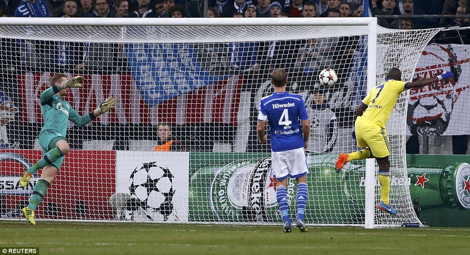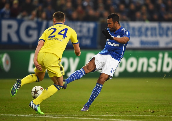 | Hàng phòng ngự hớ hênh của đội chủ sân Veltins Arena liên tục để các chân sút đội khách có cơ hội bắn phá. Oscar tung cú volley đẹp mặt như thủ môn Faehrmann xuất sắc cản phá. |