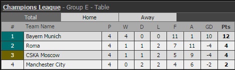 | Với 12 điểm tuyệt đối, Bayern chính thức giành vé vào vòng knock-out với vị trí đầu bảng E. |