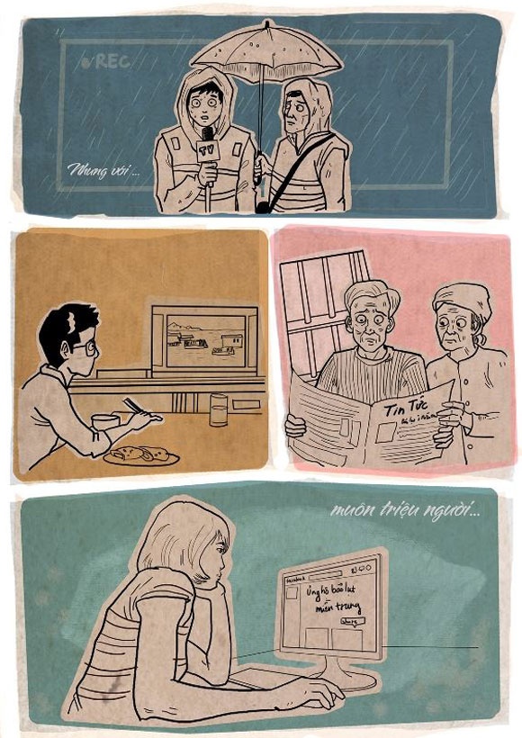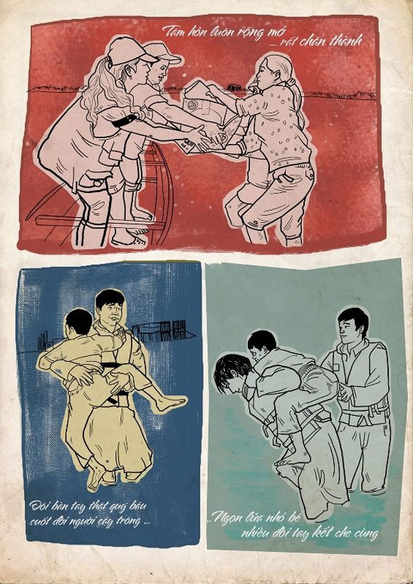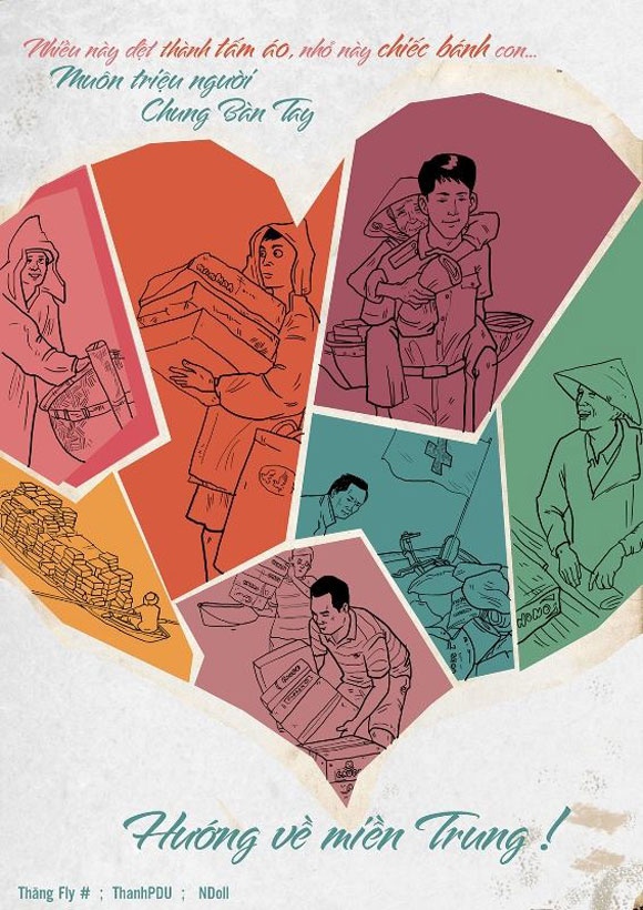 | Gần đây, cộng đồng mạng liên tục chia sẻ với nhau những bức hình cảm động của Thăng Fly. Không chỉ xót xa bởi những hình ảnh một lần nữa lột tả được sự nghèo khó, nguy khốn của người dân miền Trung, mà nhiều người còn cảm động bởi tấm lòng của một họa sỹ trẻ dành cho những người dân nơi đây. |