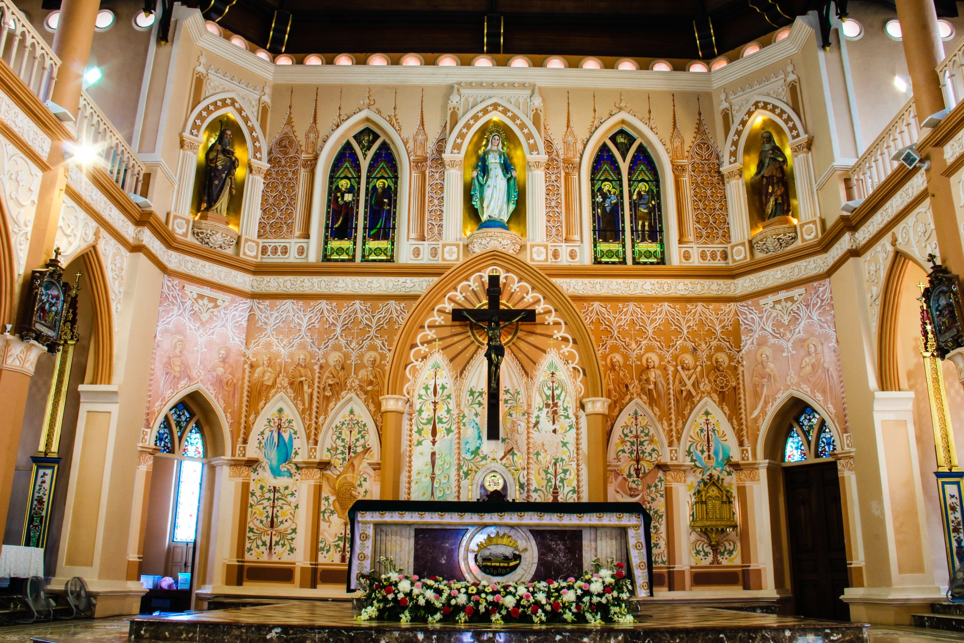 | Nhà thờ dài 60 mét, rộng 20 mét, dường như mô phỏng theo kiến trúc Gothique Pháp của nhà thờ Đức Bà Sài Gòn. |