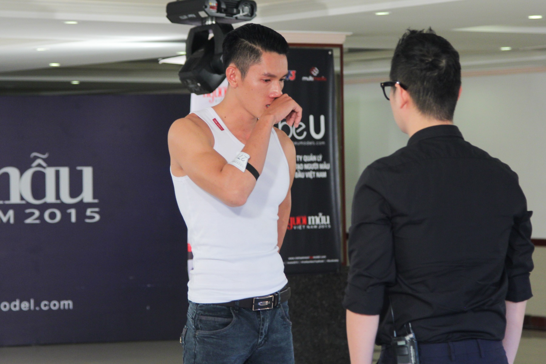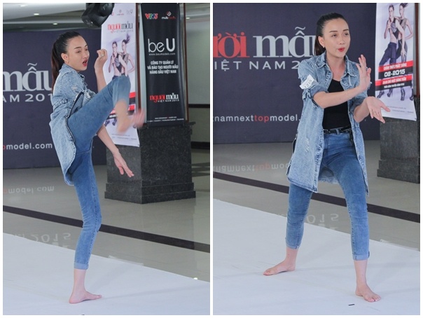 | Thí sinh từng lọt top 20 vòng chung kết Vietnam's Next Top Model 2014 còn có màn đối chất hài hước với giám khảo Samuel Hoàng. Chàng trai 9X còn bất ngờ cởi áo khoe hình thể lý tưởng. Anh rất tự hào về khả năng kiên trì luyện thể thao của bản thân trong nhiều năm qua. |