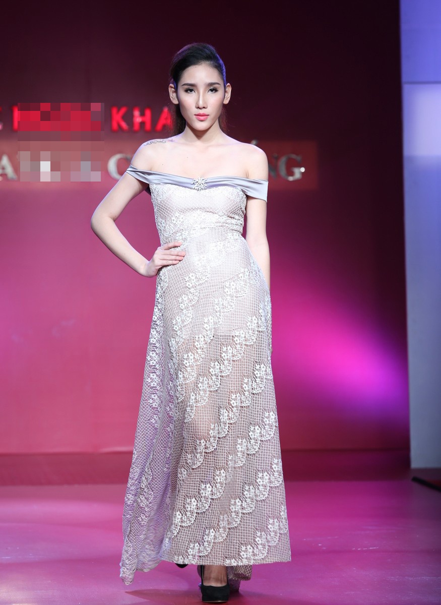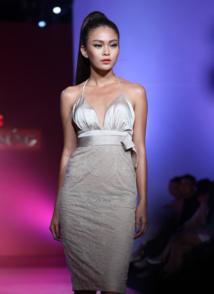 | Tiếp đó, Mâu Thanh Thủy thể hiện thiết kế váy cúp ngực có hơi hướng váy ngủ, đang được yêu thích hiện nay. |