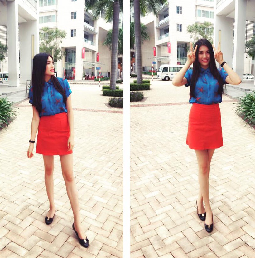| Quán quân Elite Model Look - Lệ Hằng tự tin trong bộ cánh sáng màu. Khác với vẻ lạnh lùng trên sàn diễn, người mẫu đi giày đế bệt thoải mái lúc tản bộ. |
