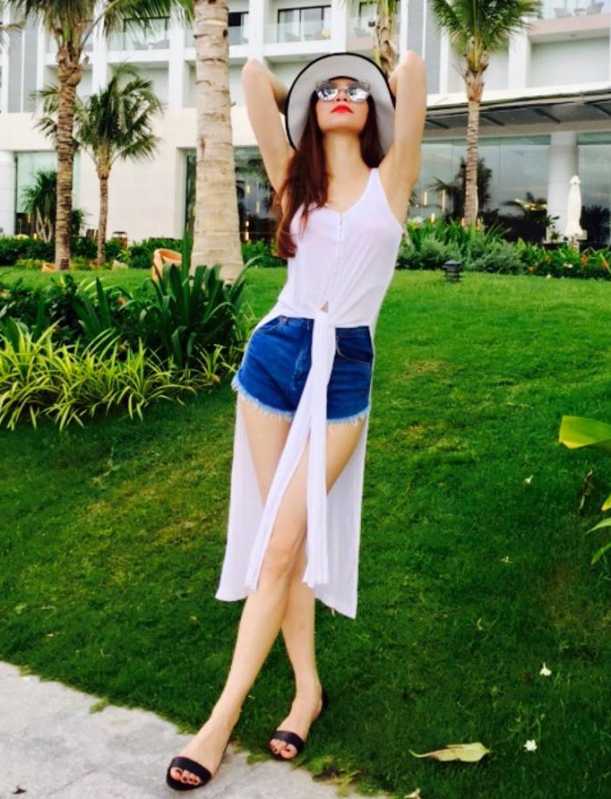 | Trong khi đó, Hồ Ngọc Hà có chuyến du lịch biển vào cuối tuần. Trên đường phố, bà mẹ một con khoe vóc dáng mảnh mai, đôi chân thon dài với set áo sơ-mi dáng dài cột vạt, quần shorts jean hiện đại. Bộ cánh phá cách giúp nữ ca sĩ nhận được nhiều lượt thích (like) từ người hâm mộ. |