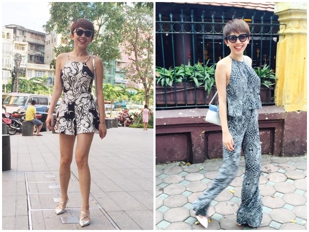 | Tóc Tiên tiếp tục tạo ấn tượng với street style gợi cảm. Tuần này, người đẹp hải ngoại diện jumpsuits họa tiết hai dây sexy. Mốt áo cổ yếm cùng quần ống suông được mix-match hợp trào lưu giúp giọng ca Ngày mai thoải mái khi tản bộ. |