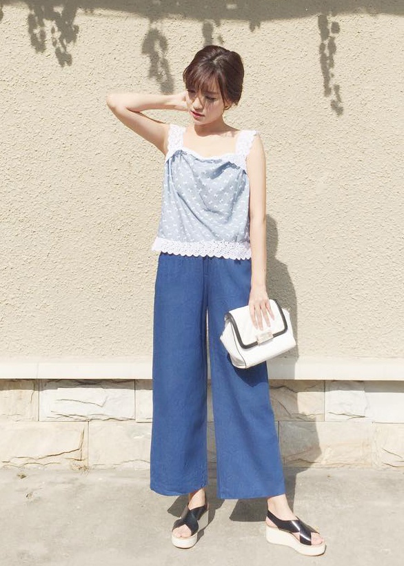 | Hình ảnh thời trang đời thường nhẹ nhàng của Bùi Bích Phương được tín đồ thời trang yêu thích. Tuần qua, giọng ca Vâng anh đi đi duy trì phong cách nữ tính, áo ren điệu đà, quần lửng và giày sandals thuận tiện khi đi dạo. |