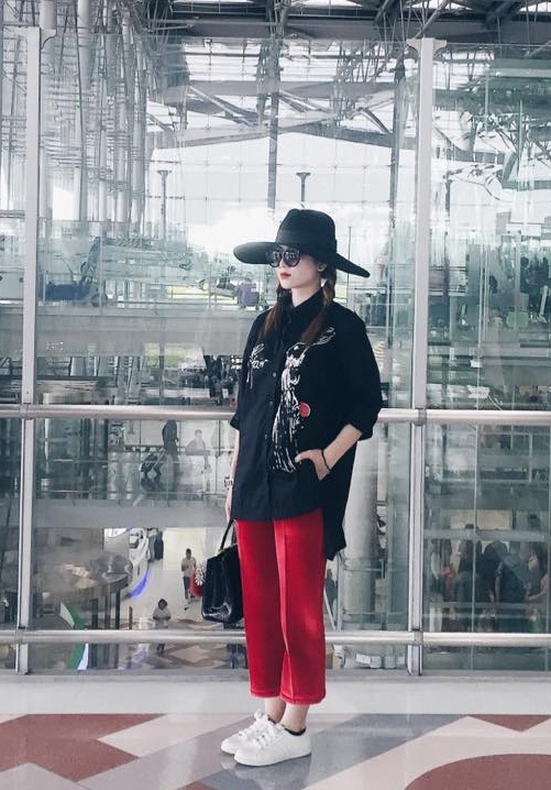 | Kỳ Hân ghi điểm cộng hình ảnh với phong cách trẻ trung. Người đẹp diện váy ngắn, khéo khoe đôi chân thon dài khi có mặt ở sân bay. |