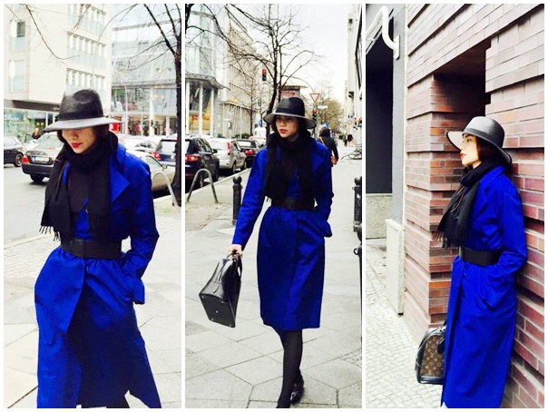 | Hồ Ngọc Hà chọn nhiều set trang phục thu đông ấm áp, hợp xu hướng. Áo măng-tô màu xanh cobalt đậm nổi bật mix ăn ý cùng phụ kiện mũ fedora và túi LV sành điệu. |