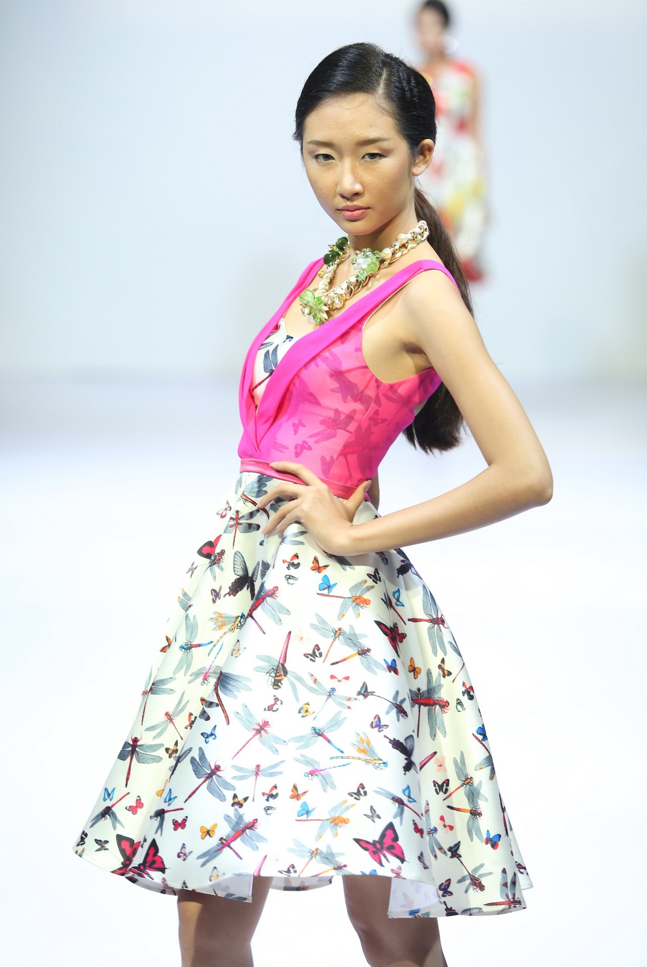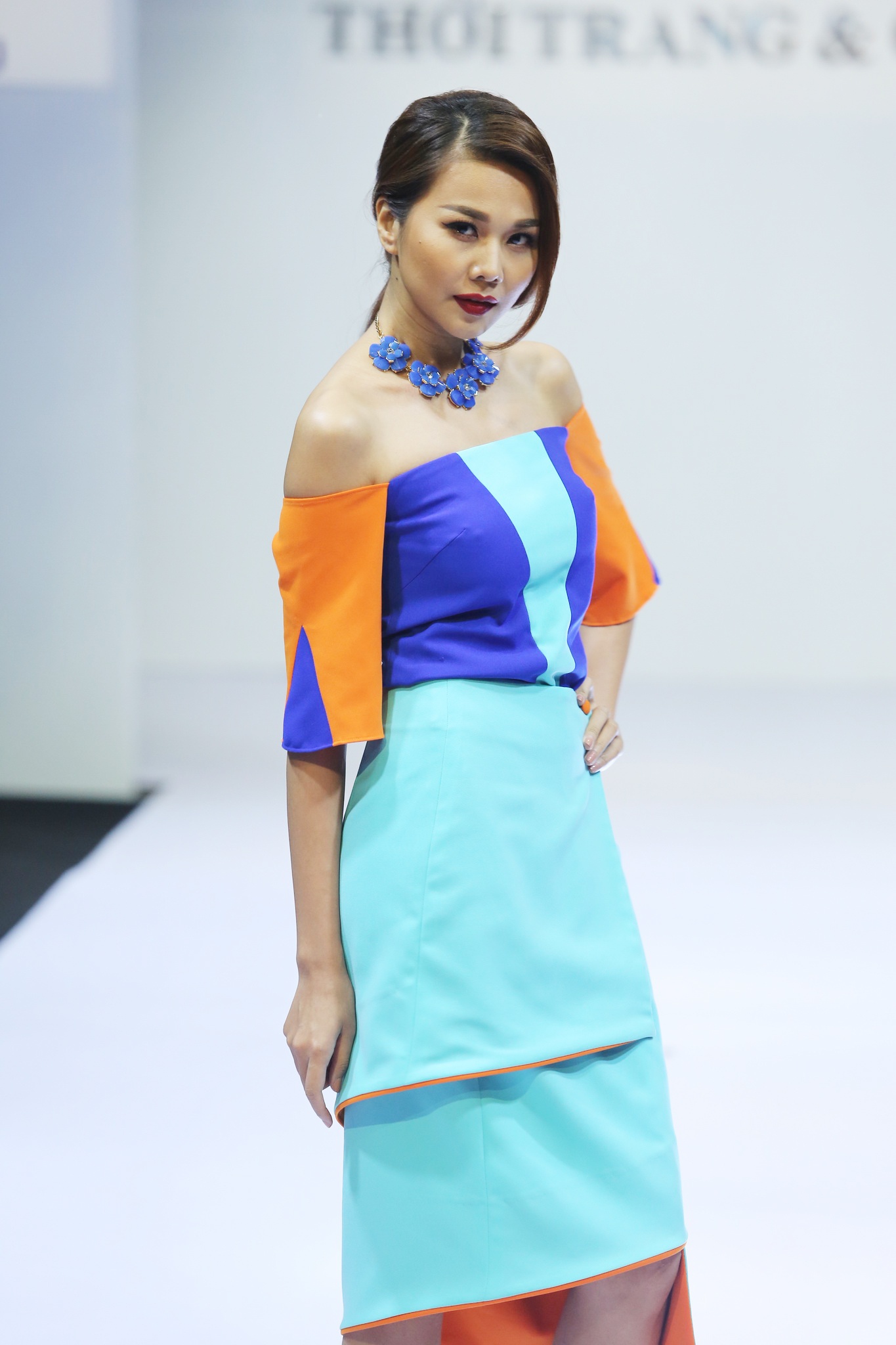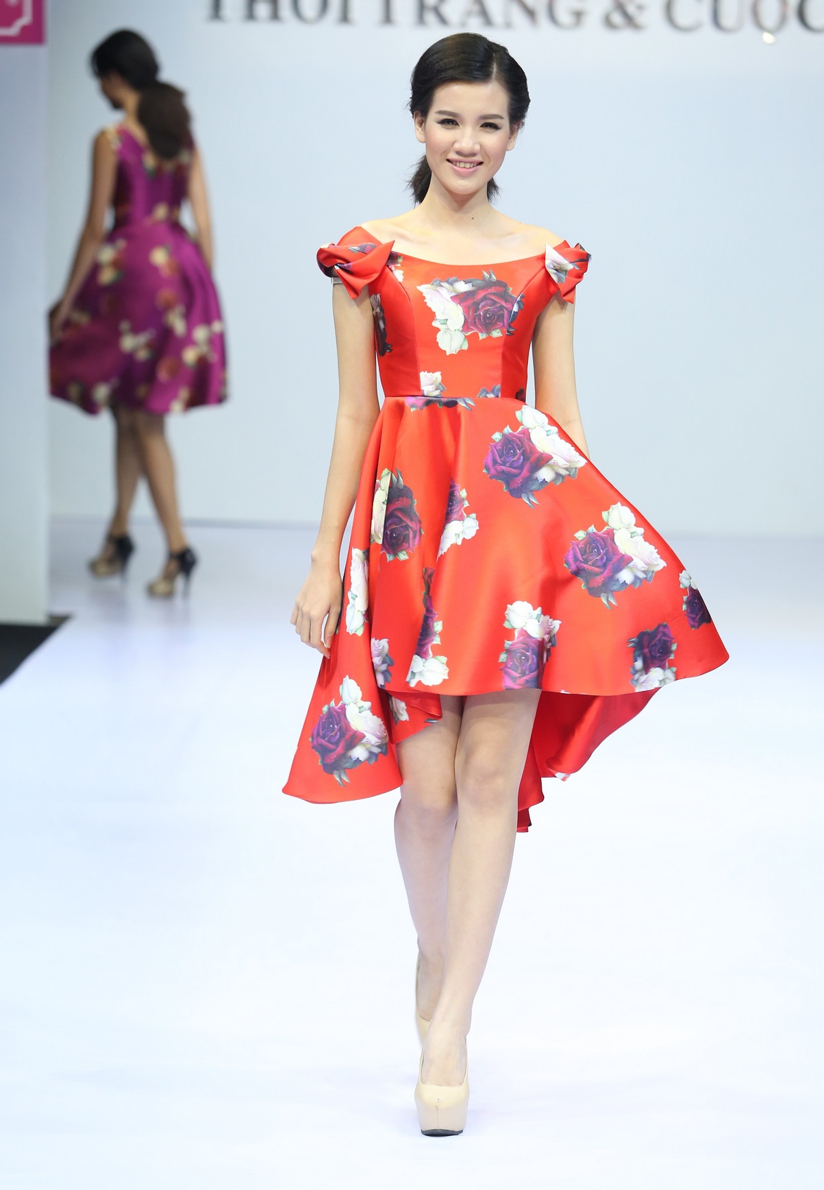 | Trên sàn catwalk, siêu mẫu giữ vững tác phong trình diễn chuyên nghiệp, tự tin. Nhờ đó, cô được các thương hiệu, các nhà thiết kế tin tưởng giao vai trò mở màn, chốt màn bộ sưu tập mùa hè. Trong ảnh, nữ diễn viên Siêu nhân X diện bộ cánh bồng xòe trẻ trung, làm vedette bộ sưu tập của NTK Sơn Collection. |