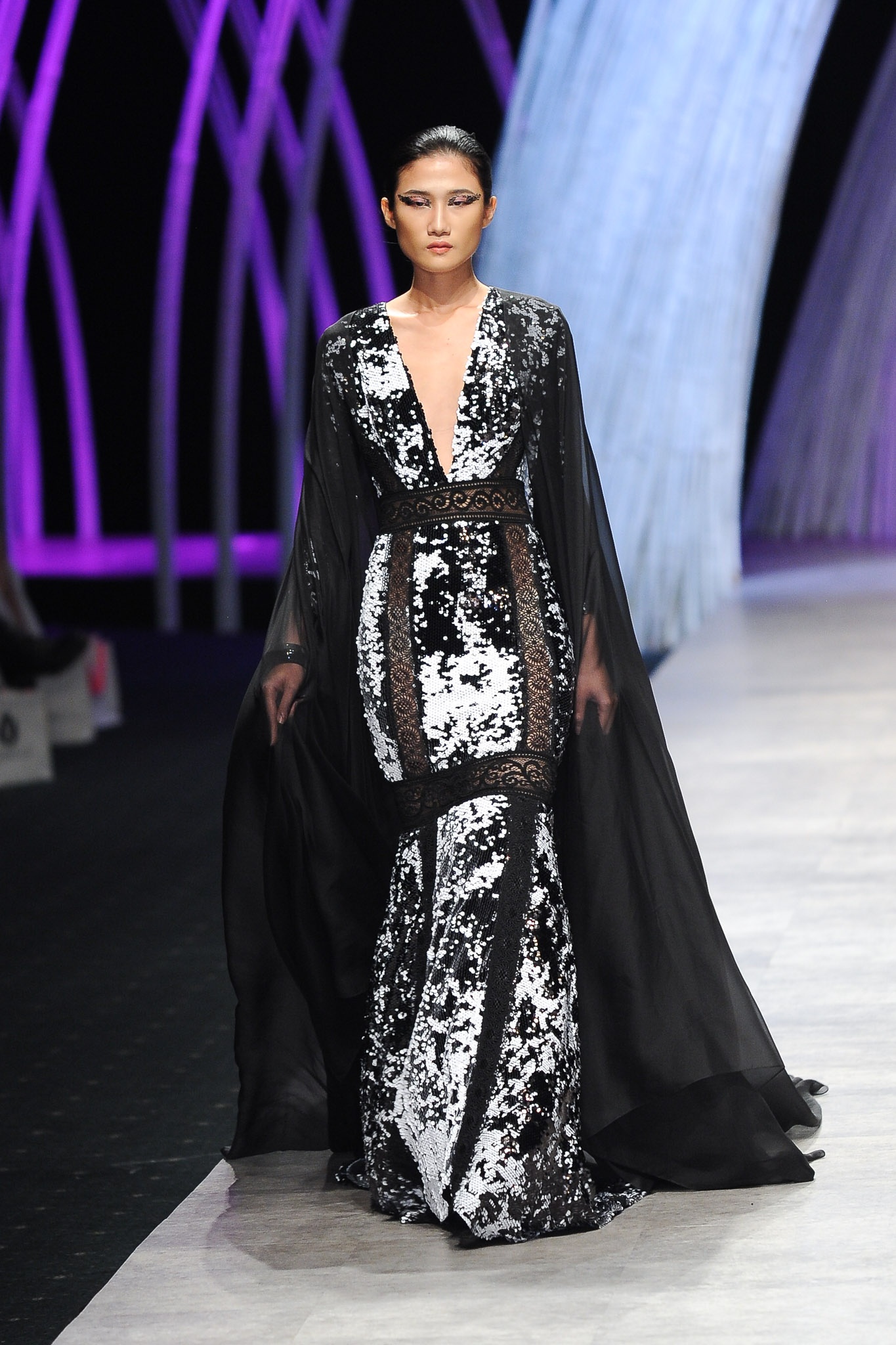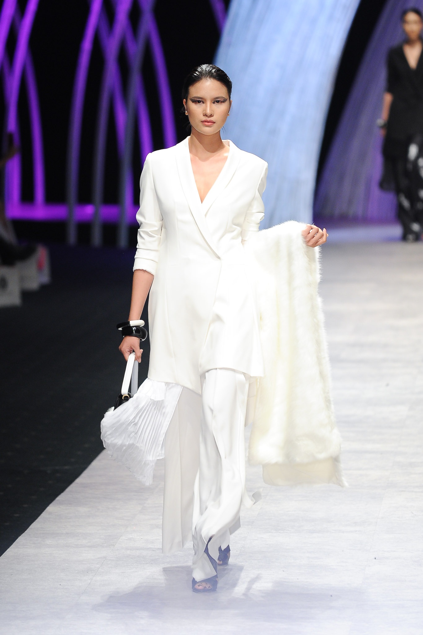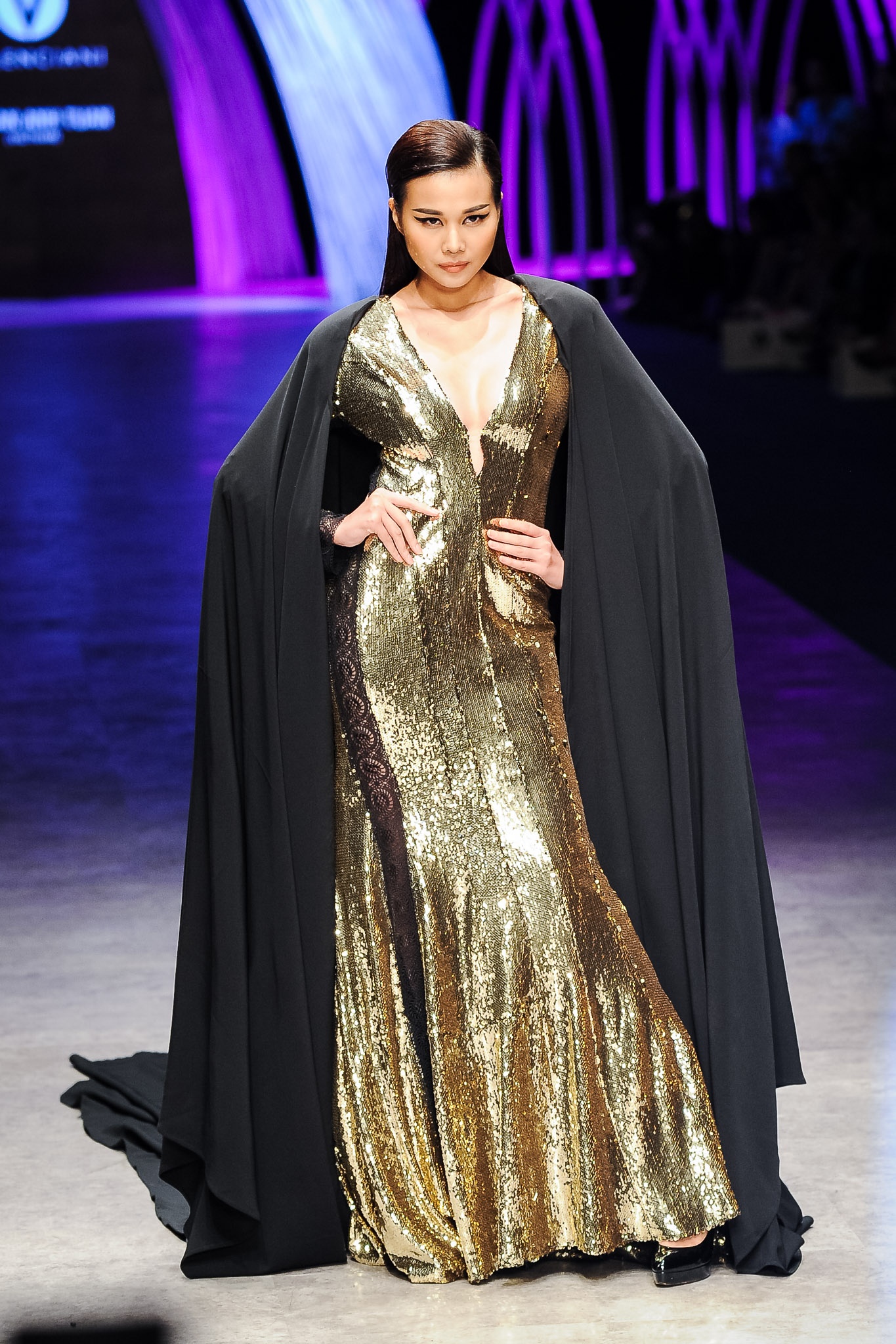 | Quán quân mùa đầu - Trang Khiếu - trở lại sàn diễn cùng các đồng nghiệp bước ra từ cuộc thi sau nhiều năm vắng bóng. Cô đảm nhận vai trò mở màn bộ sưu tập. |