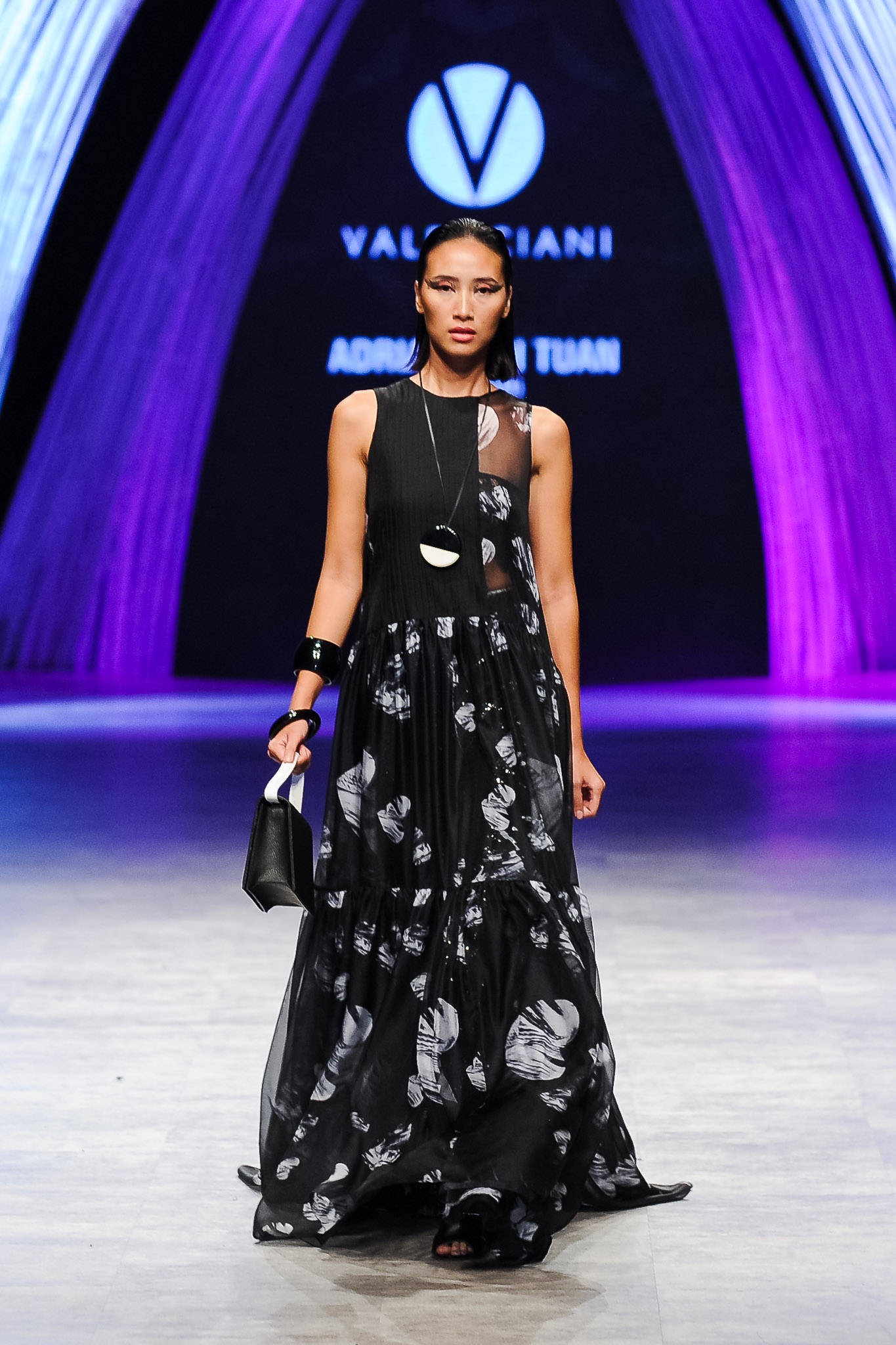 | Sau đó, Mai Giang - quán quân Next Top mùa thứ 3 - tự tin trình diễn những thiết kế tâm huyết của giám khảo Vietnam's Next Top Model. |