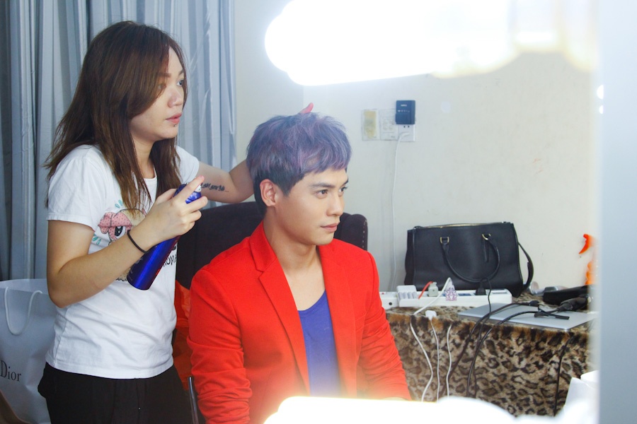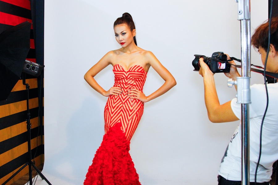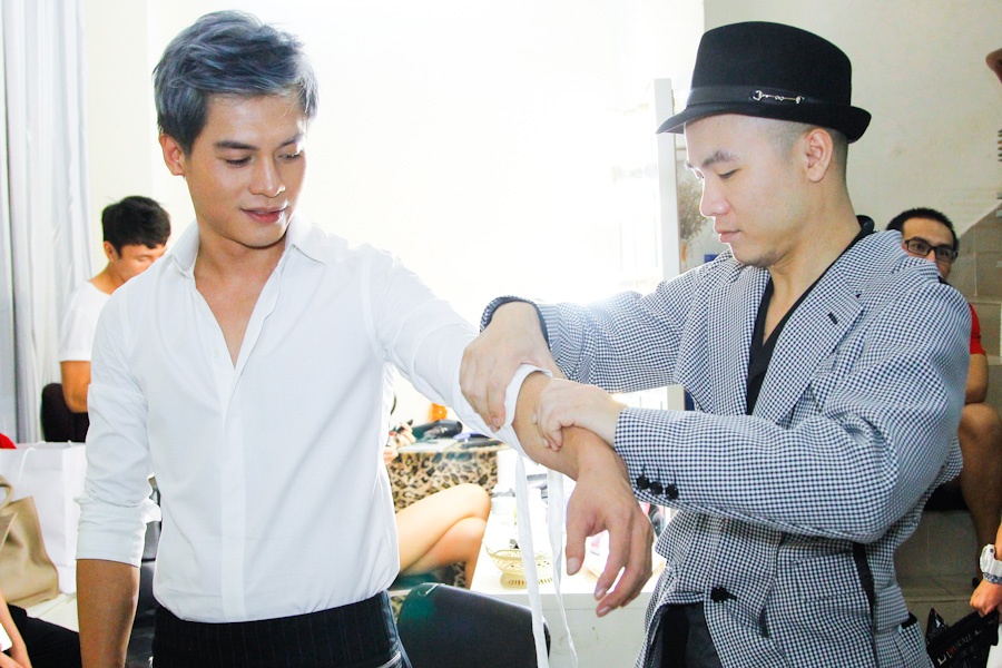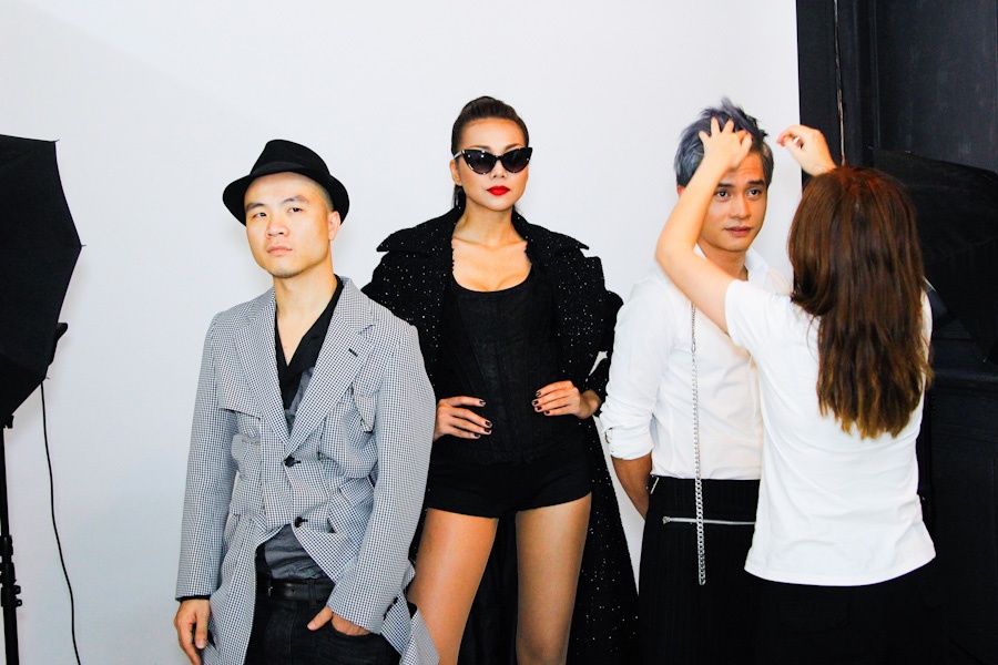 Là người đến sớm nhất, Đỗ Mạnh Cường rất nhiệt tình góp ý cho cho ê-kíp từng ly từng tý trong việc set up ánh sáng và các góc chụp ảnh hợp lý để đúng với yêu cầu của bộ ảnh. Anh cũng đích thân tỉ mỉ chỉnh sửa từng chi tiết trên trang phục cho siêu mẫu Thanh Hằng. Chuyên gia trang điểm Nam Trung thì rất hài hước. Anh vui đùa và tạo không khí cởi mở cho buổi chụp ảnh, đồng thời tư vấn phong cách trang điểm và làm tóc để giúp cho siêu mẫu Thanh Hằng nổi bật nhất.