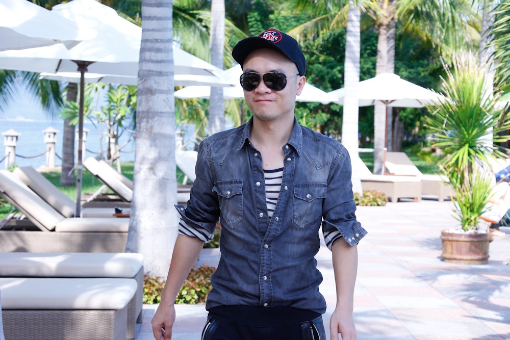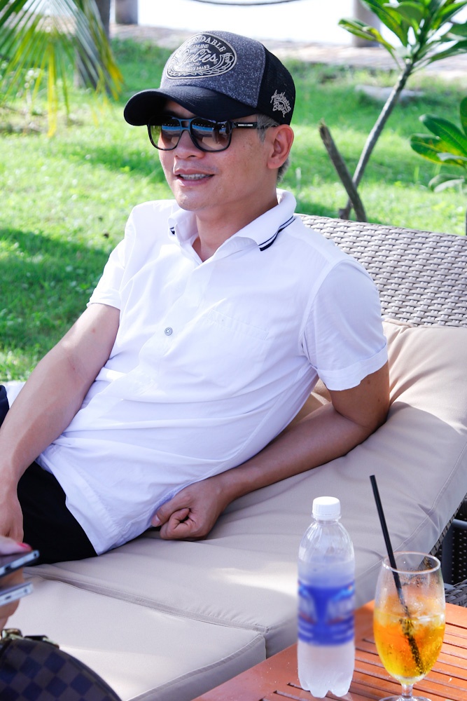 | Chuyên gia trang điểm Nam Trung ngồi thư giãn trên ghế rất thoải mái. |