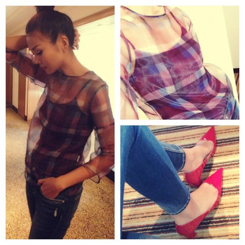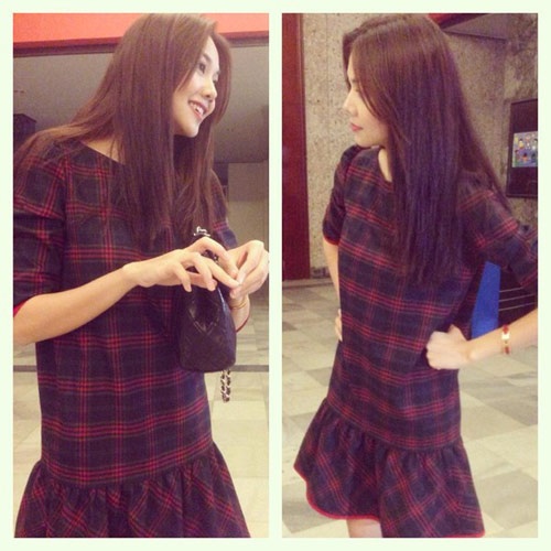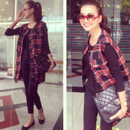 Với sự trỗi dậy của phong cách grunge trong 1-2 năm trở lại đây, thế giới của họa tiết kẻ caro nhờ đó mà cũng trở nên sôi động hơn. Không hổ danh là biểu tượng thời trang hàng đầu trong Vbiz, Thanh Hằng đã nhanh chóng bắt nhịp với kiểu họa tiết này. Tuy nhiên, cô lại làm mới chúng theo một phong cách rất nữ tính và thanh lịch thay vì style nổi loạn như grunge.