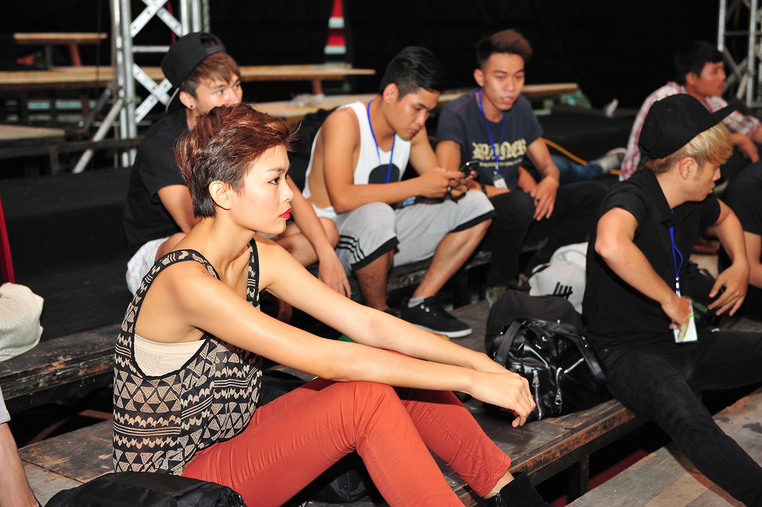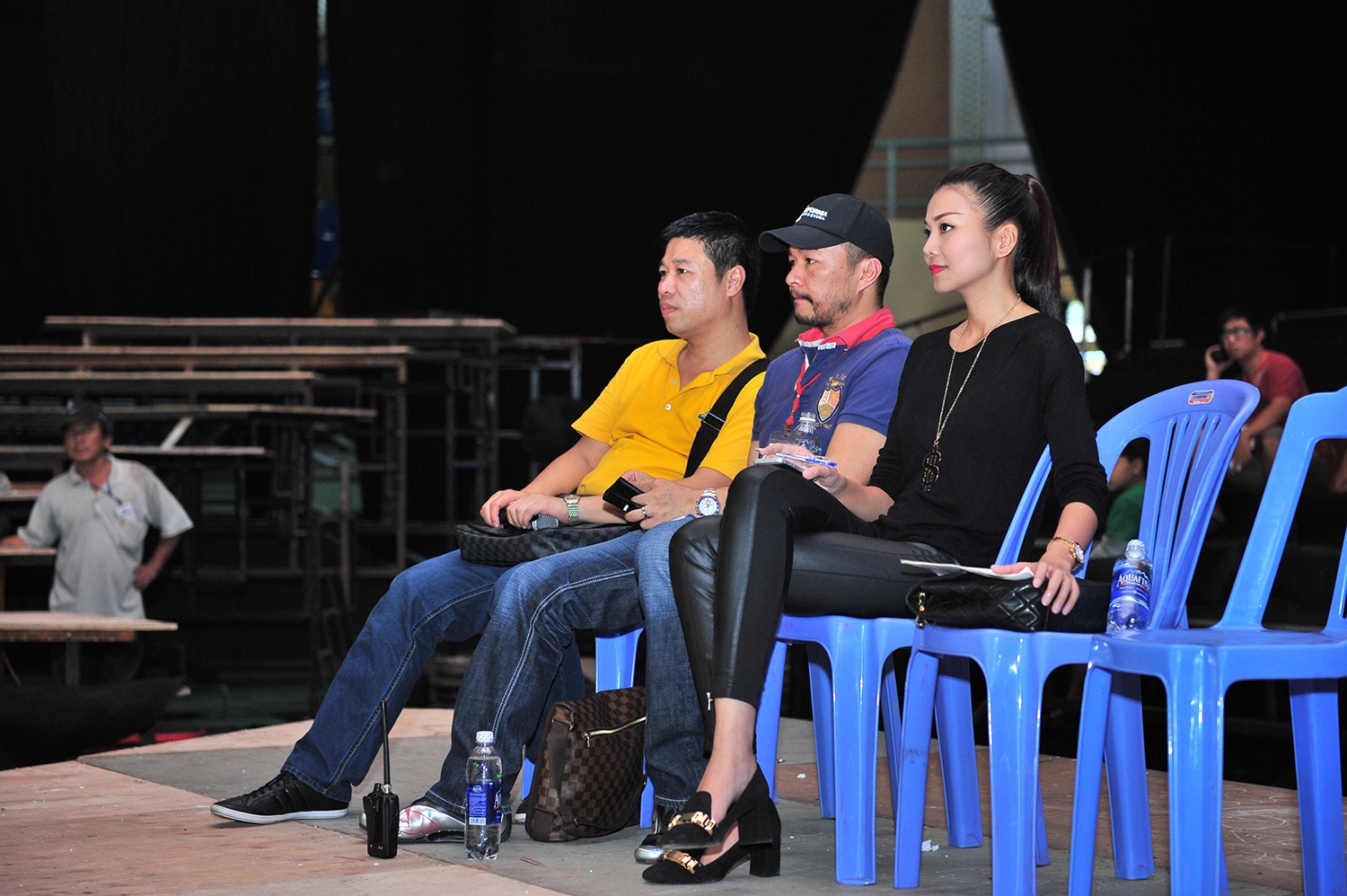 Miss J cùng ê-kíp đến từ Singapore quan sát các thí sinh luyện tập.